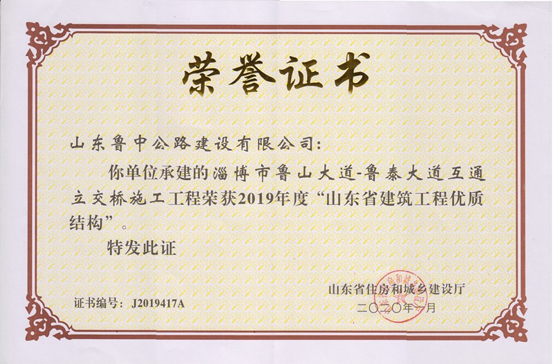 - 淄博市魯山大道-魯泰大道互通立交橋、魯山大道-張辛路互通立交橋工程獲2023年度市政工程最高質(zhì)量水平評(píng)價(jià)