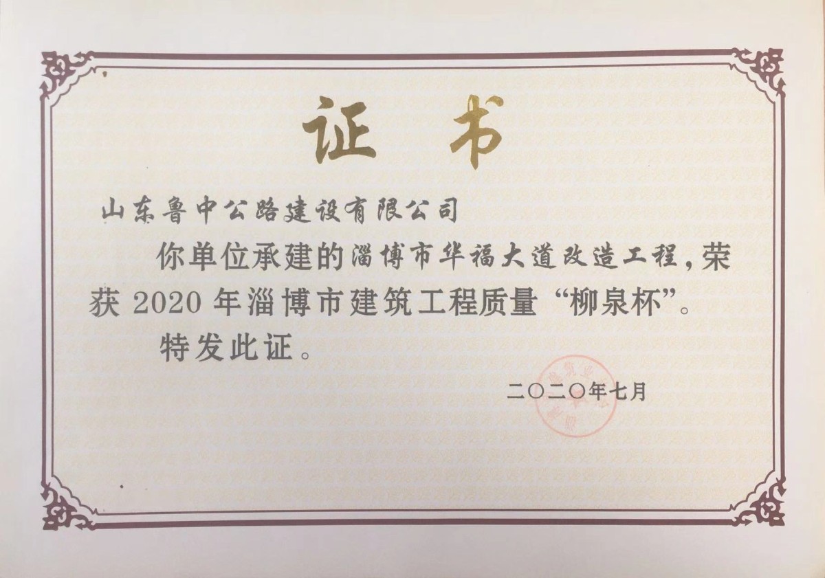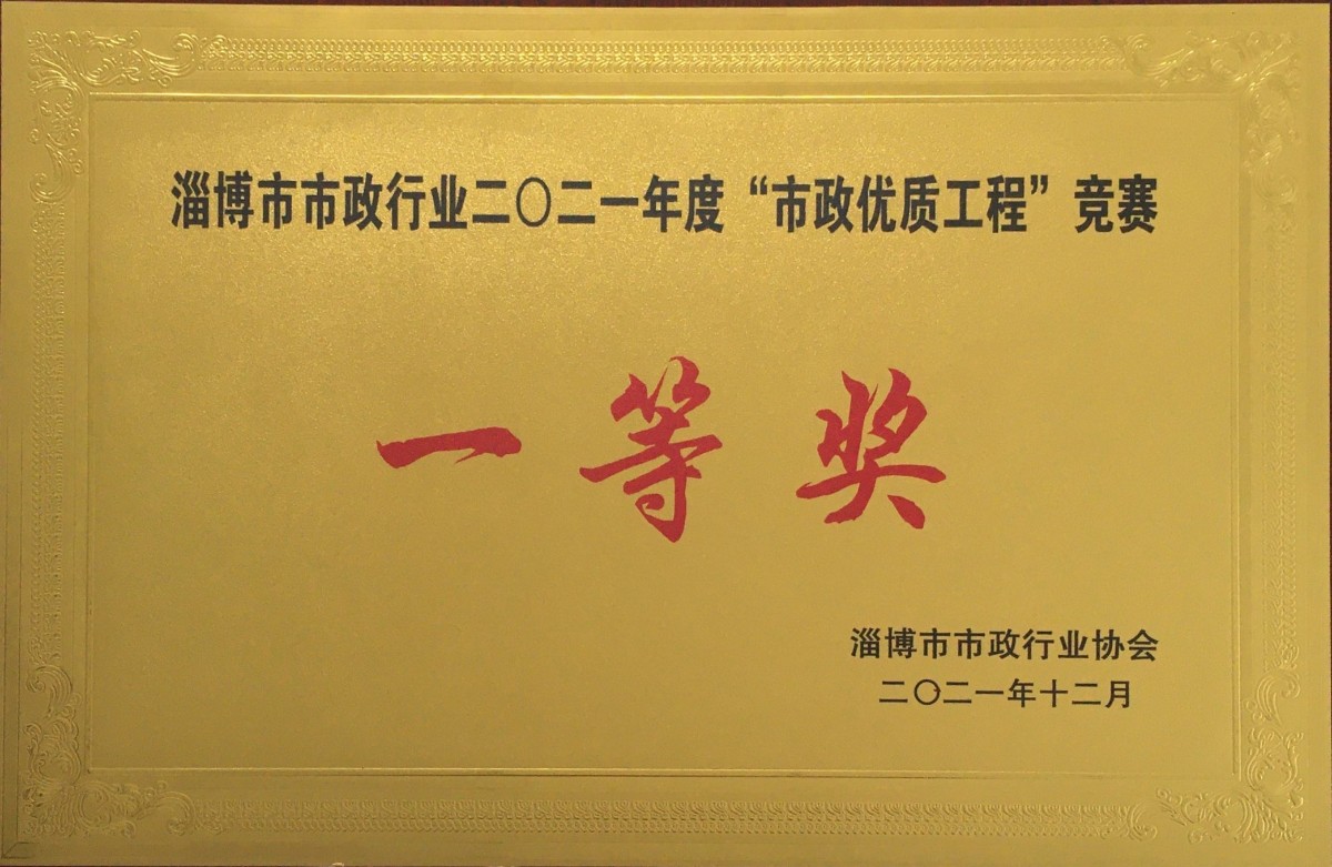 - 淄博市聯(lián)通路、人民西路、華光路提升改造工程榮獲2021年度”山東省工程建設(shè)泰山杯獎(jiǎng)“三等獎(jiǎng)