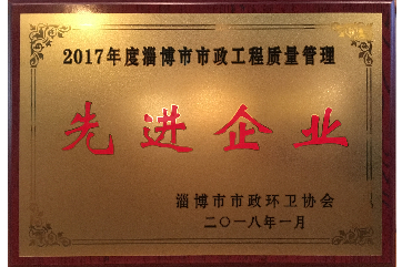 - 2017年度淄博市市政工程質(zhì)量管理先進(jìn)企業(yè)