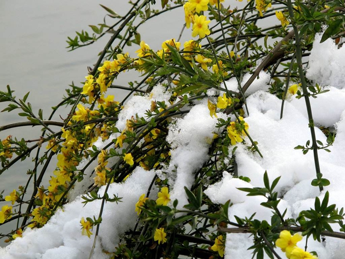 早春的寒冷更能透出迎春花那強(qiáng)大的生命力??箛?yán)寒,戰(zhàn)冰雪,生命的綠芽在茁壯成長(zhǎng),雖不比玉蓮冰上生,臘梅傲寒冬,但它能使萬(wàn)物復(fù)蘇。它比不上牡丹那么富貴,玫瑰那么濃艷,還有月季的顏色,玉蘭的潔雅。眾香國(guó)里群芳平艷,絢麗奪目,它更不是“角兒”。但就是這份普普通通襯托著它的偉大、不凡。