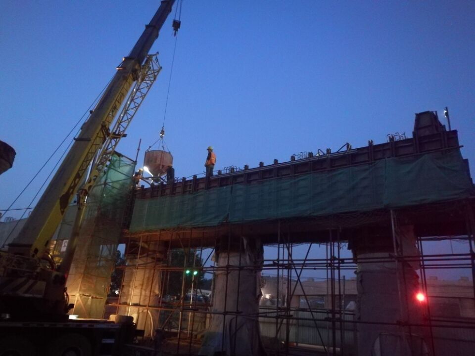 2017年5月24日凌晨,張博路分離立交開(kāi)始了首片上跨張博路40m箱梁的吊裝施工,這是S102工程建設(shè)中具有里程碑意義的一夜。至此,張博路分離立交的建設(shè)進(jìn)入了新的快車(chē)道。負(fù)責(zé)張博路分離立交施工的是S102項(xiàng)目部橋隧分部,現(xiàn)場(chǎng)負(fù)責(zé)人周勇勇。這個(gè)團(tuán)隊(duì)?wèi){借其團(tuán)結(jié)、聽(tīng)指揮的上行下效,贏得了項(xiàng)目部所有人員的贊賞。S294張博路是淄博市境內(nèi)的主要交通干線,車(chē)流量大,車(chē)速快,S102上跨張博路位置又處在淄川區(qū)雙楊鎮(zhèn)的重要路口,附近陶瓷廠、磨料場(chǎng)的生產(chǎn)規(guī)模大,平時(shí)可謂車(chē)水馬龍;跨鐵路施工歷來(lái)是讓人頭疼的難題,交涉、辦手續(xù)、再交涉、再辦手續(xù),可任你如何的發(fā)急發(fā)狠,一道歷史久遠(yuǎn)的張博鐵路就這樣靜靜的臥在我們面前。困難,不言而喻,為如期保質(zhì)、安全的完成工程施工,橋隧分部人員做了大量的現(xiàn)場(chǎng)調(diào)查、方案論證,交通組織設(shè)計(jì)再三修改,施工人員準(zhǔn)時(shí)在上、下班交通高峰期間指揮交通、警示行人。提起橋隧分部,項(xiàng)目經(jīng)理翟峰總是贊不絕口,“很久沒(méi)有看到這樣的團(tuán)隊(duì)了,負(fù)責(zé)人帶頭干,一家人跟著沖,有活力,有擔(dān)當(dāng)”,這是大家都有目共睹的,春節(jié)過(guò)后,橋隧分部每周的施工進(jìn)度全部都能按照計(jì)劃完成,計(jì)劃落實(shí)情況是項(xiàng)目部下屬各個(gè)單位中做的最好的,往返工地,也經(jīng)常能看到汗流浹背、衣衫濕透的周勇勇在指揮著橋下交通。5月20日、21日晚,為保證首片上跨張博路40m箱梁的順利進(jìn)行,橋隧分部連續(xù)兩個(gè)晚上進(jìn)行了張博路交通試封閉工作。凌晨時(shí)分,來(lái)往大車(chē)依然絡(luò)繹不絕,且絲毫沒(méi)有減速的意圖,現(xiàn)場(chǎng)負(fù)責(zé)人周勇勇用電話向橋下的兄弟們發(fā)出一份份清晰、準(zhǔn)確地指令,橋下的工作人員在接收到指令后隨時(shí)對(duì)交通的交通進(jìn)行疏導(dǎo),這是一群虎狼之師,敢打敢拼,從不言敗。