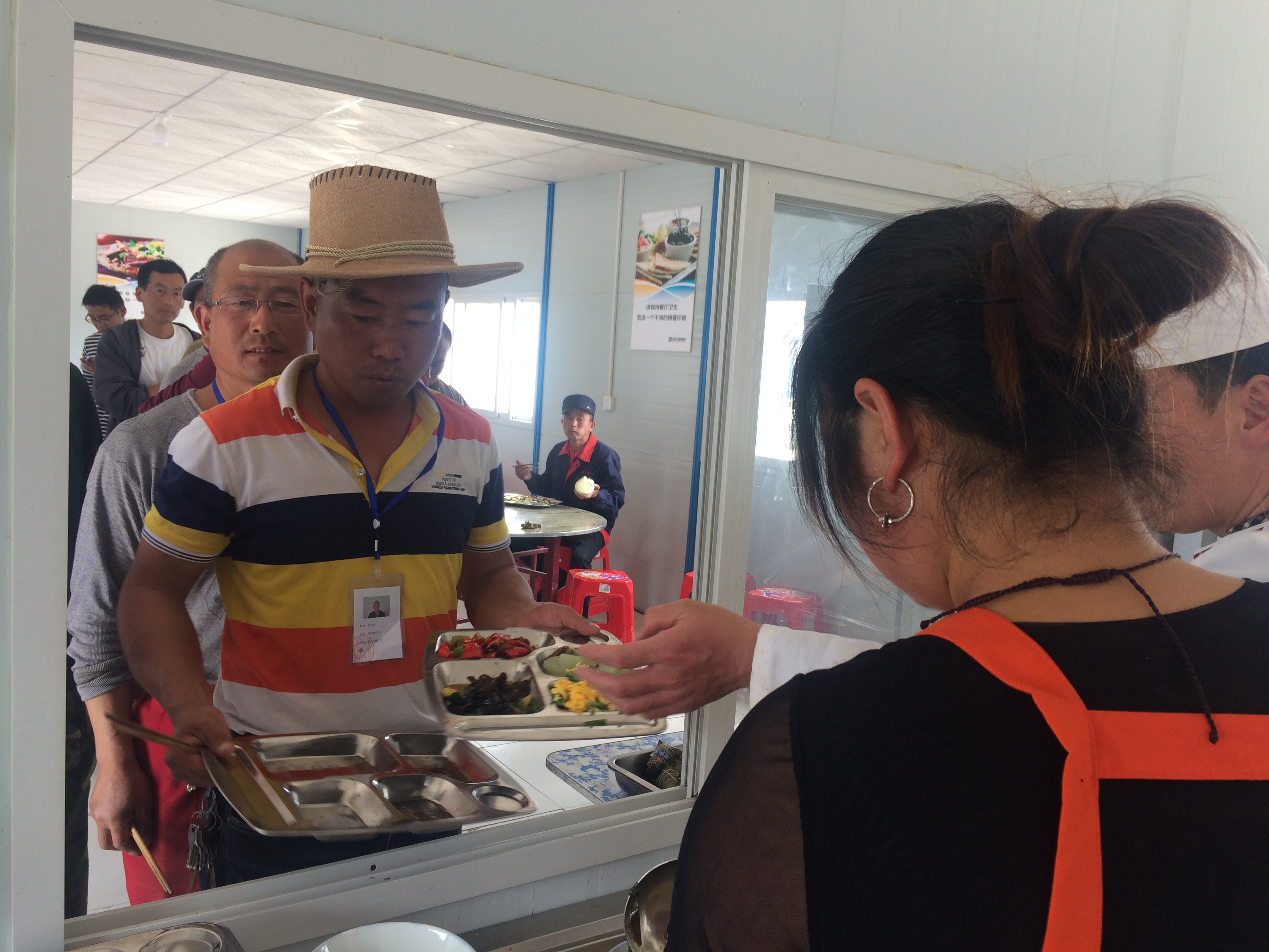 員工排隊(duì)?wèi){工作證領(lǐng)取午餐