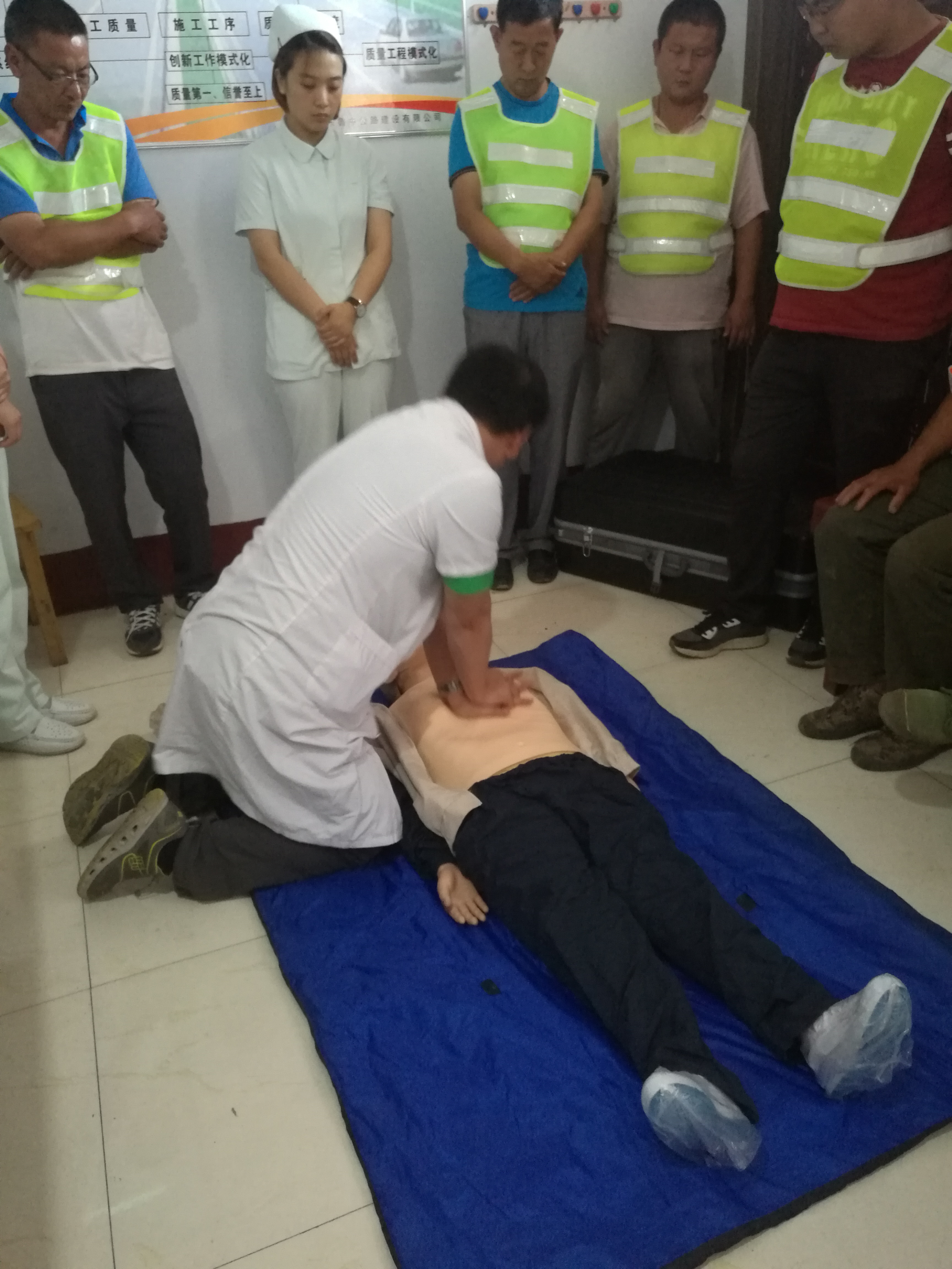 一線工人現(xiàn)場(chǎng)學(xué)習(xí)急救操作要點(diǎn)