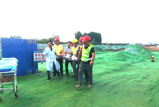 為積極響應(yīng)公司組織的2017年“安全生產(chǎn)月”活動(dòng),進(jìn)一步增強(qiáng)施工人員安全防范意識(shí)和提高應(yīng)急處置能力,強(qiáng)化應(yīng)對(duì)各類事故的自救和搶救技能,提高快速反應(yīng)能力、應(yīng)急救援能力以及協(xié)同配合能力,確保一旦發(fā)生突發(fā)事故,能夠有效組織、快速反應(yīng)、高效運(yùn)轉(zhuǎn),最大限度地減少事故傷害,天津路一標(biāo)段項(xiàng)目部于2017年6月8日組織進(jìn)行了施工安全生產(chǎn)應(yīng)急救援急救培訓(xùn)及應(yīng)急救援演練活動(dòng)。