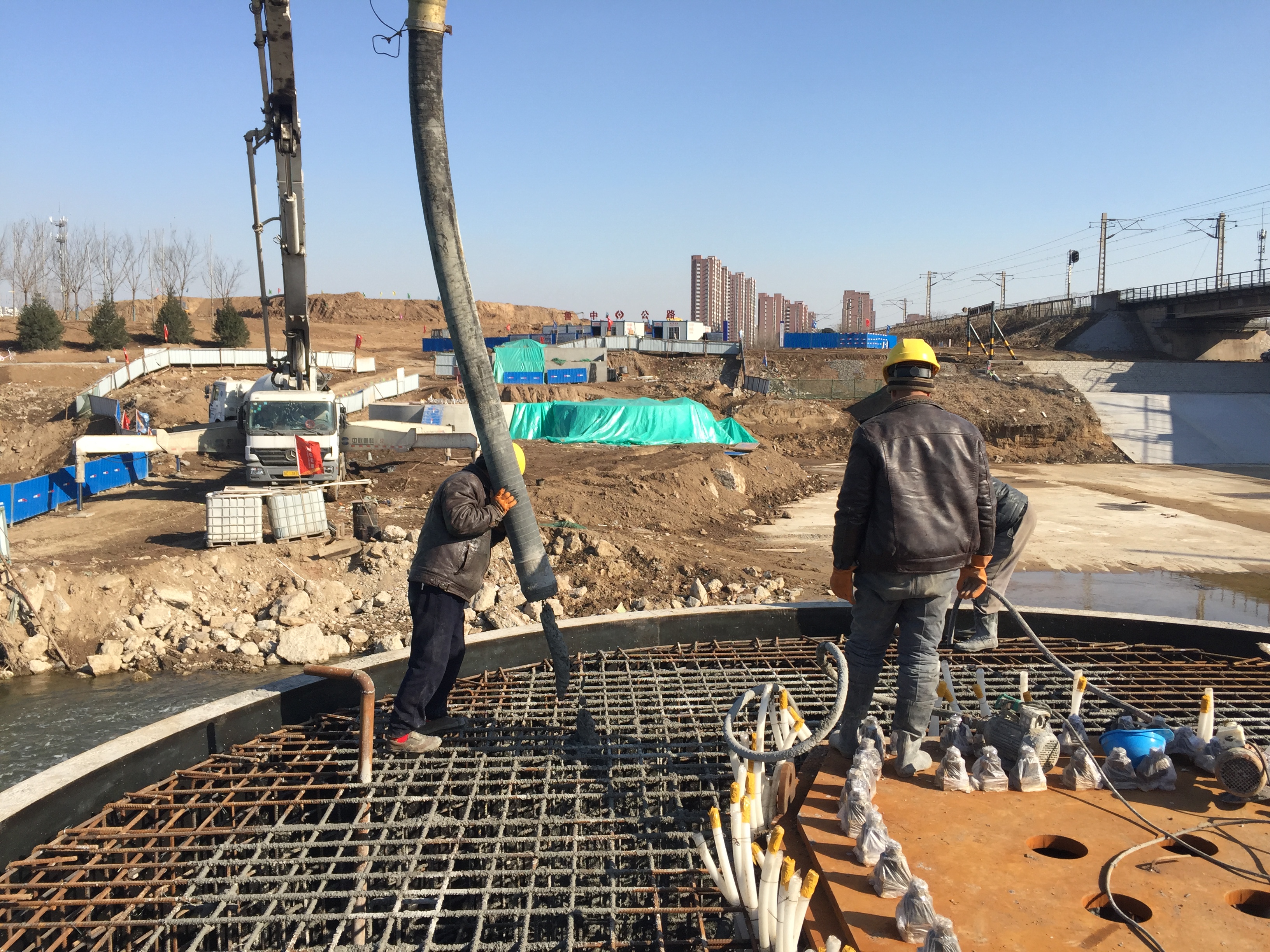 2016年12月31日,施工過(guò)程中為防止圓承臺(tái)混凝土水化熱過(guò)大而影響質(zhì)量,我們?cè)黾恿死淠堋?br />