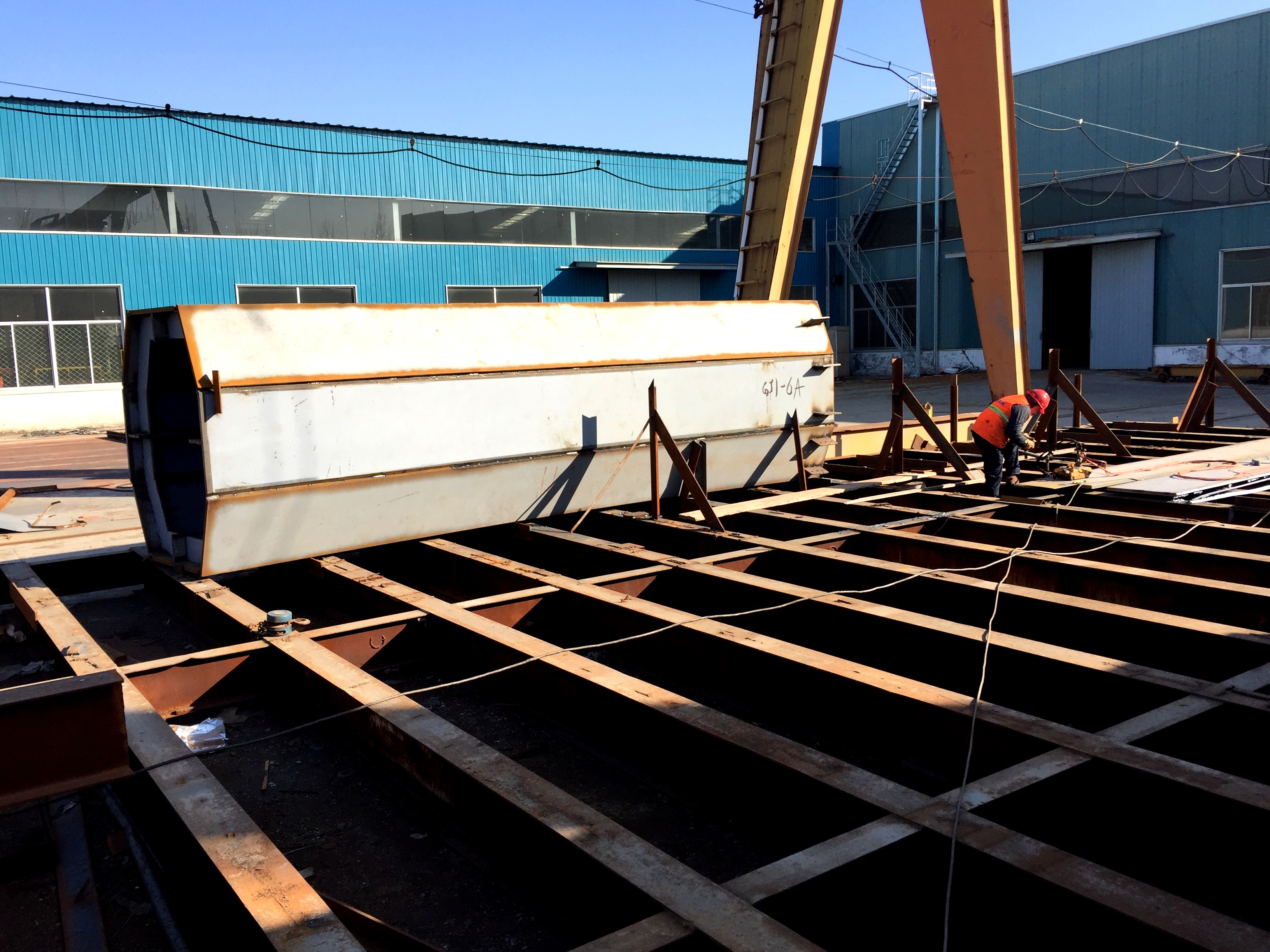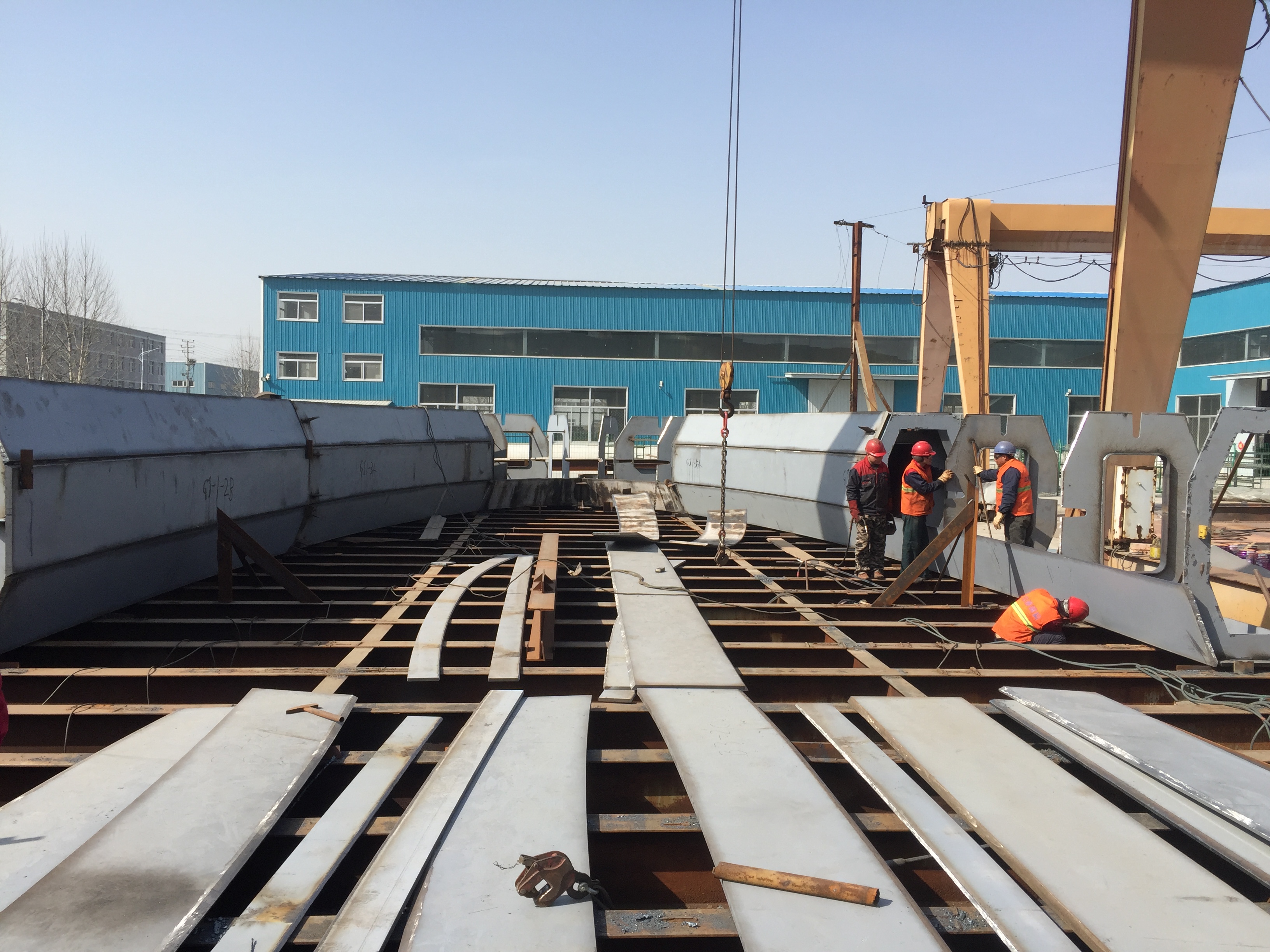 2017年2月9日,鋼主塔加工現(xiàn)場(chǎng)。