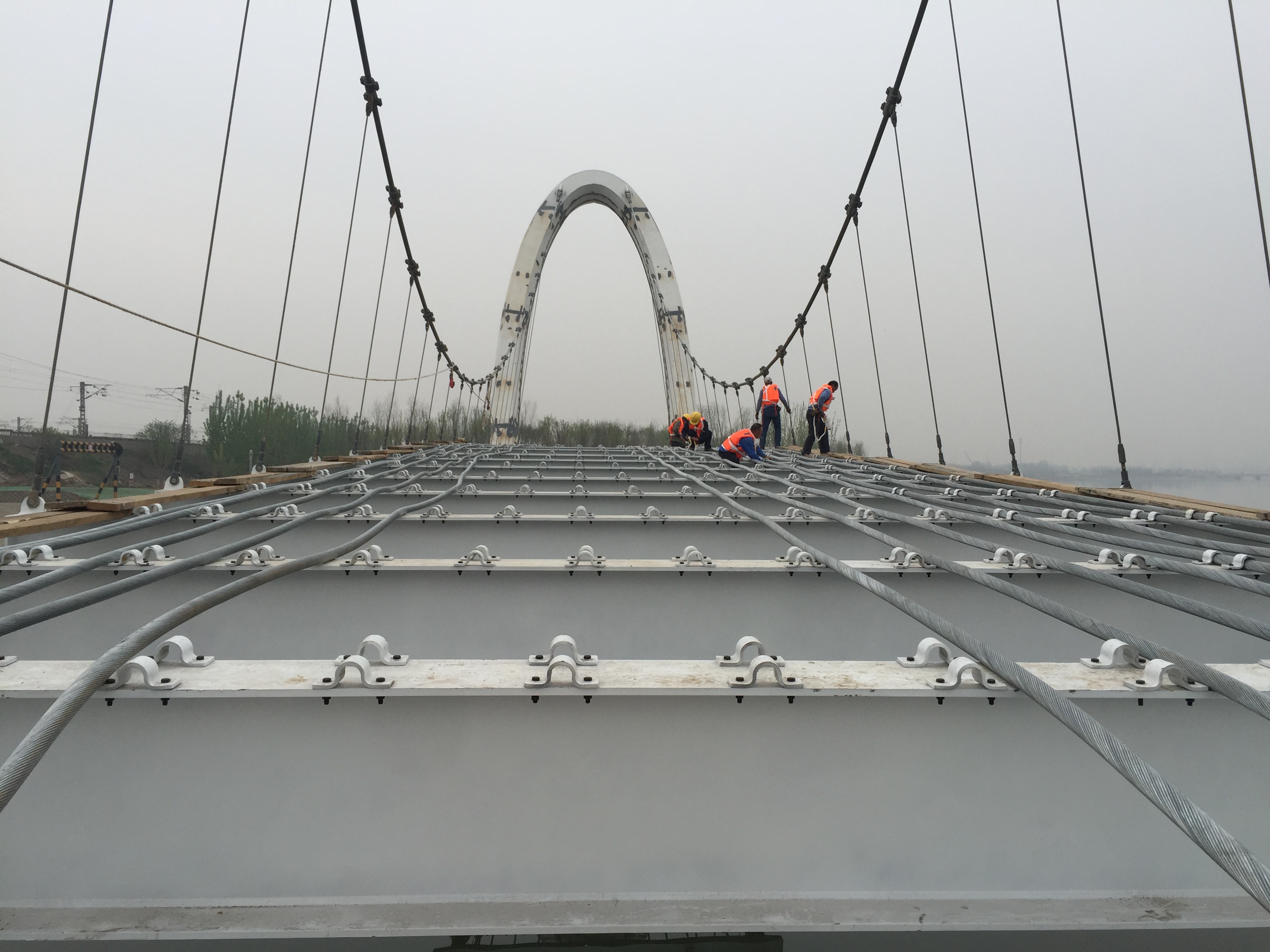 2017年4月30日,懸索橋鋼護(hù)欄開(kāi)始安裝。