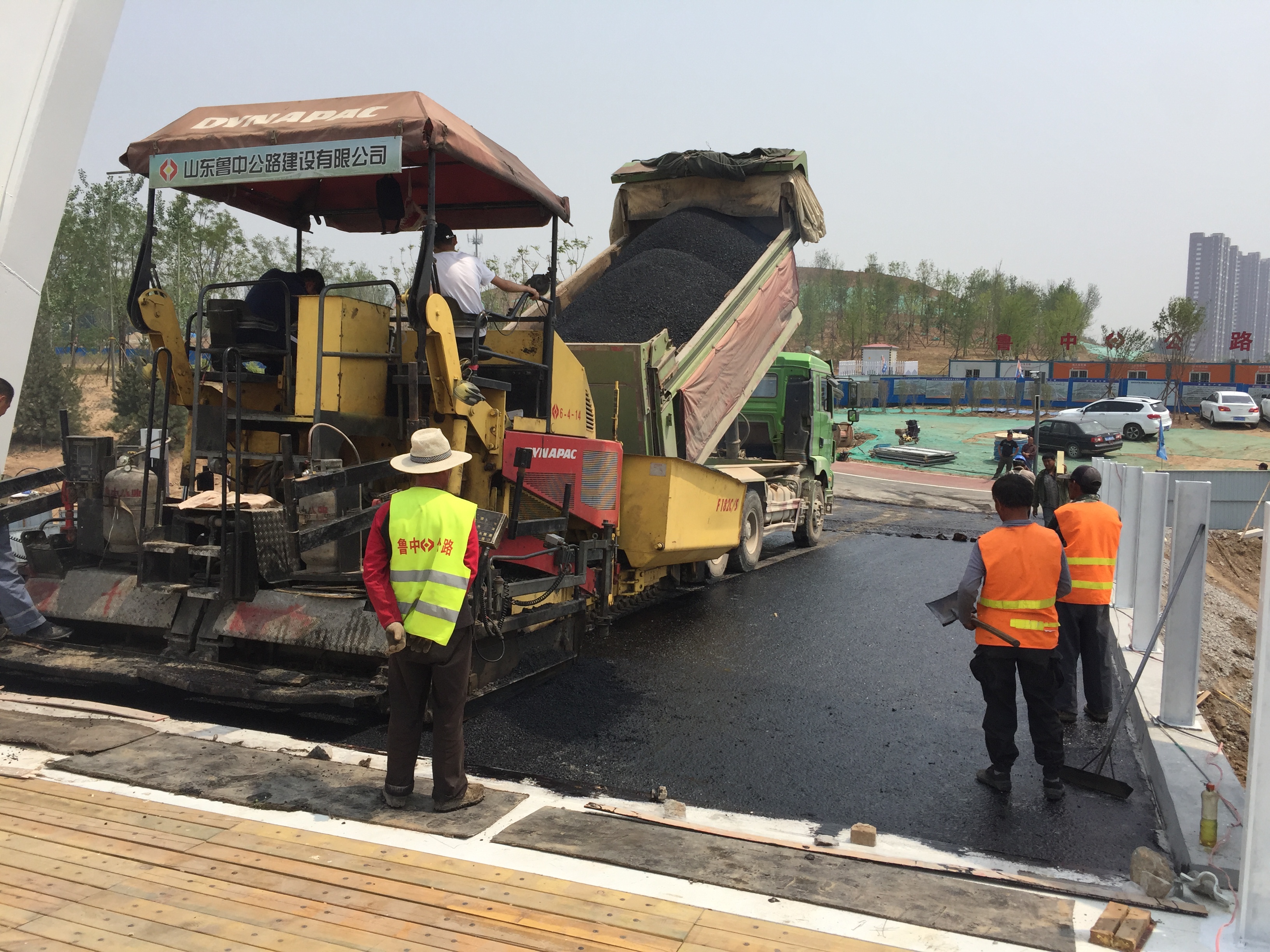 2017年5月10日,懸索橋連接段瀝青攤鋪。