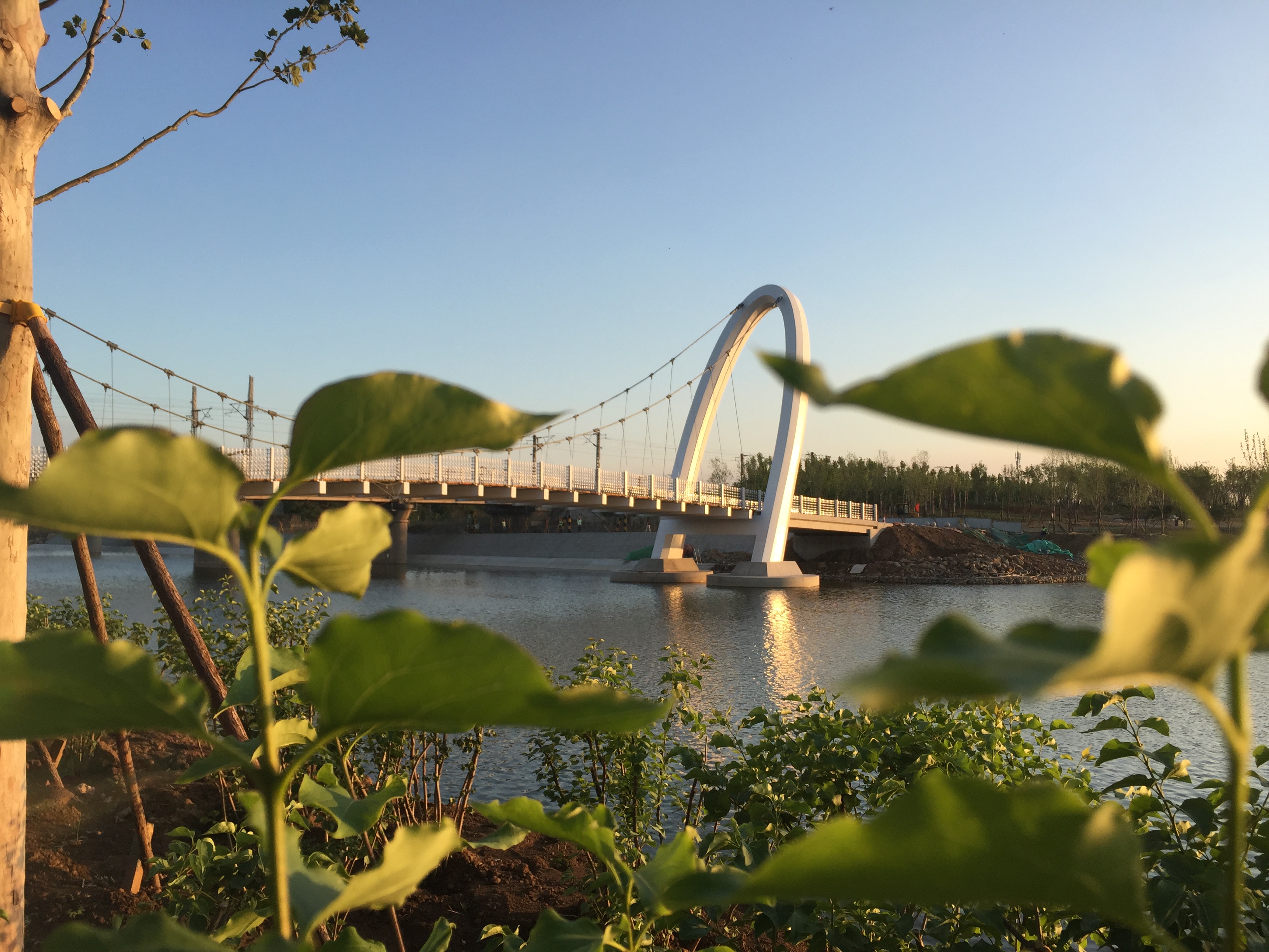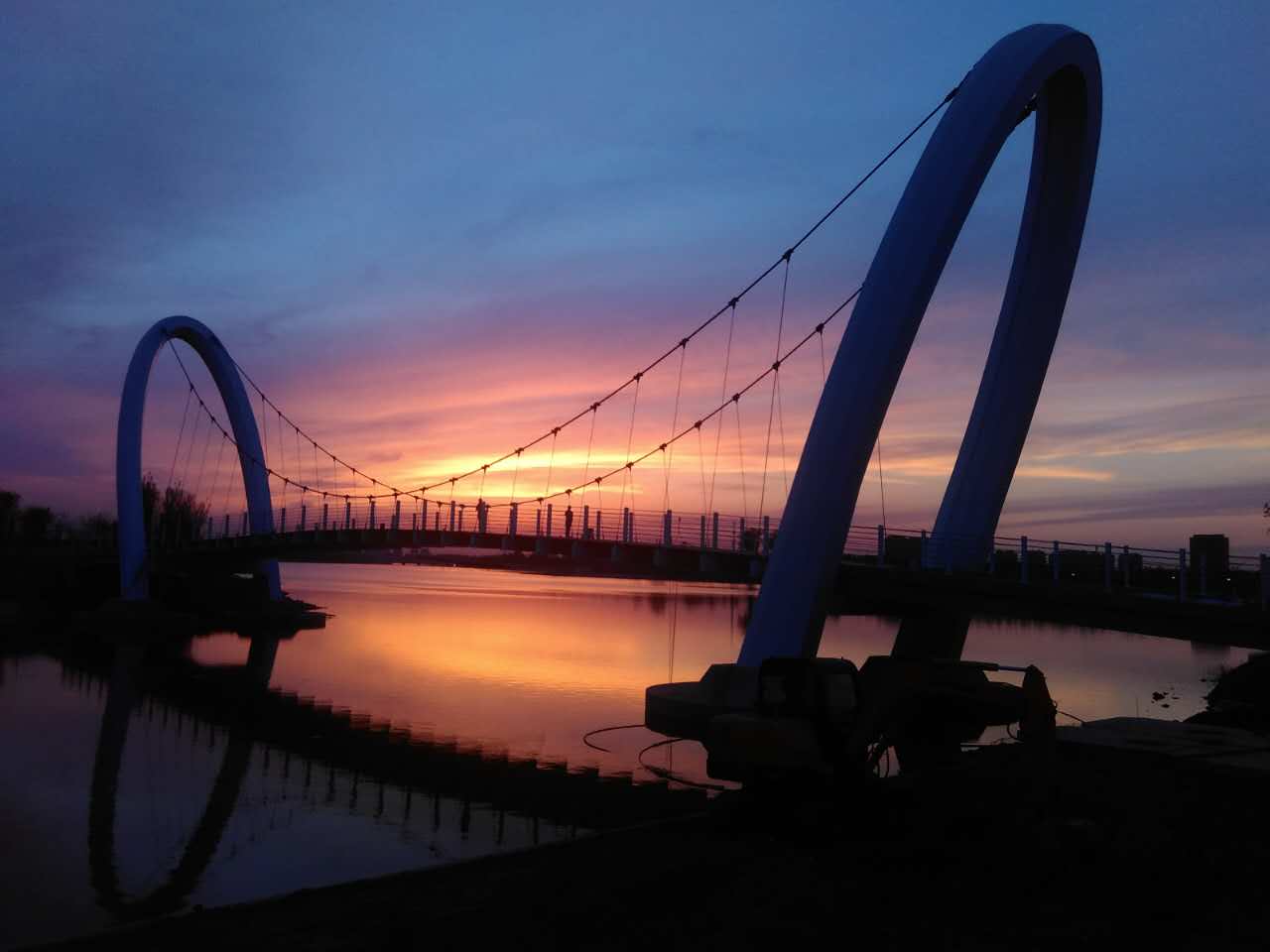 昨天的烈日下,汗水浸濕的衣背清晰可見(jiàn),一雙雙有力的臂膀在揮舞、一顆顆執(zhí)著的心在跳動(dòng),火熱的場(chǎng)面涌現(xiàn)著無(wú)窮的力量。今天桀驁的懸索橋已成為孝婦河濕地公園獨(dú)特的景觀,絡(luò)繹不絕的游人,爭(zhēng)相合影留念,而我們卻輕揮衣袖,奔赴新的征程。