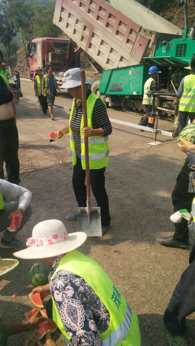 炙熱的太陽烘烤著土地,工地上根本沒有遮陰的地方,全憑頭戴草帽抵擋強烈的陽光;灑水車不斷的噴灑著水,很快變?yōu)樗徽舭l(fā);瀝青路面因高溫攤鋪炙烤著大家的肌膚;機械作業(yè)噴發(fā)的熱浪加上直曬的太陽把大家周圍的溫度瞬間提升很多倍!但是再熱的天氣也阻擋不了公路一線員工的工作熱情,公路建設者為了趕工期、追進度,仍然夜以繼日的戰(zhàn)斗在環(huán)境惡劣的施工一線。