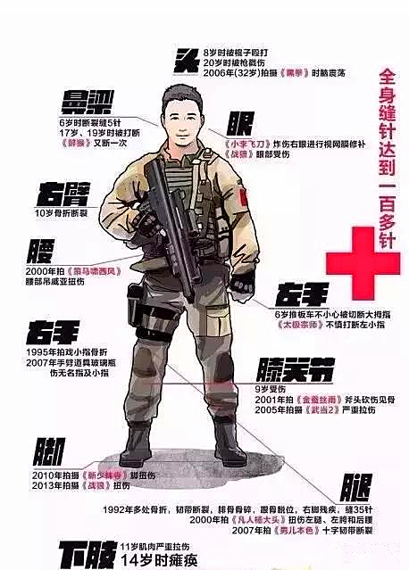現(xiàn)在他開(kāi)始將重心定位在軍旅題材,為此特意到部隊(duì)中訓(xùn)練18個(gè)月潛水、跳傘、射擊格斗、野外生存......甚至為了拍戲表演更加真實(shí)還學(xué)習(xí)坦克駕駛,誓將自己打造成為合格的戰(zhàn)士。在拍攝《戰(zhàn)狼》的一個(gè)跳海鏡頭時(shí),他連跳26次,拍攝中差點(diǎn)窒息。對(duì)于意外受傷,吳京始終認(rèn)為是動(dòng)作演員的基本工作,他從不炫耀,而且每次都特要面兒的說(shuō):“如果你一定要說(shuō),我覺(jué)得,那就是我的底線(xiàn),要高于你的理想。”