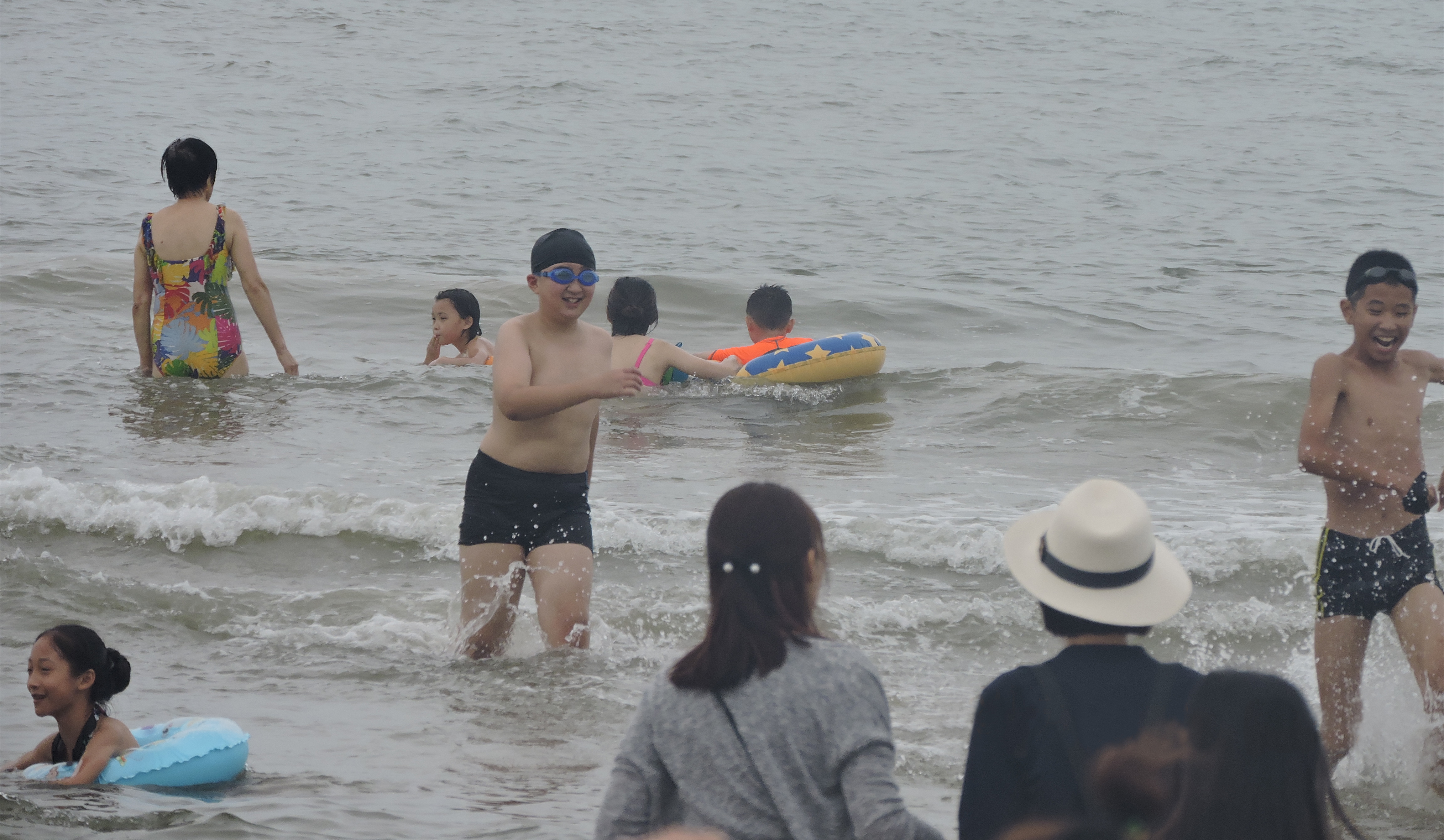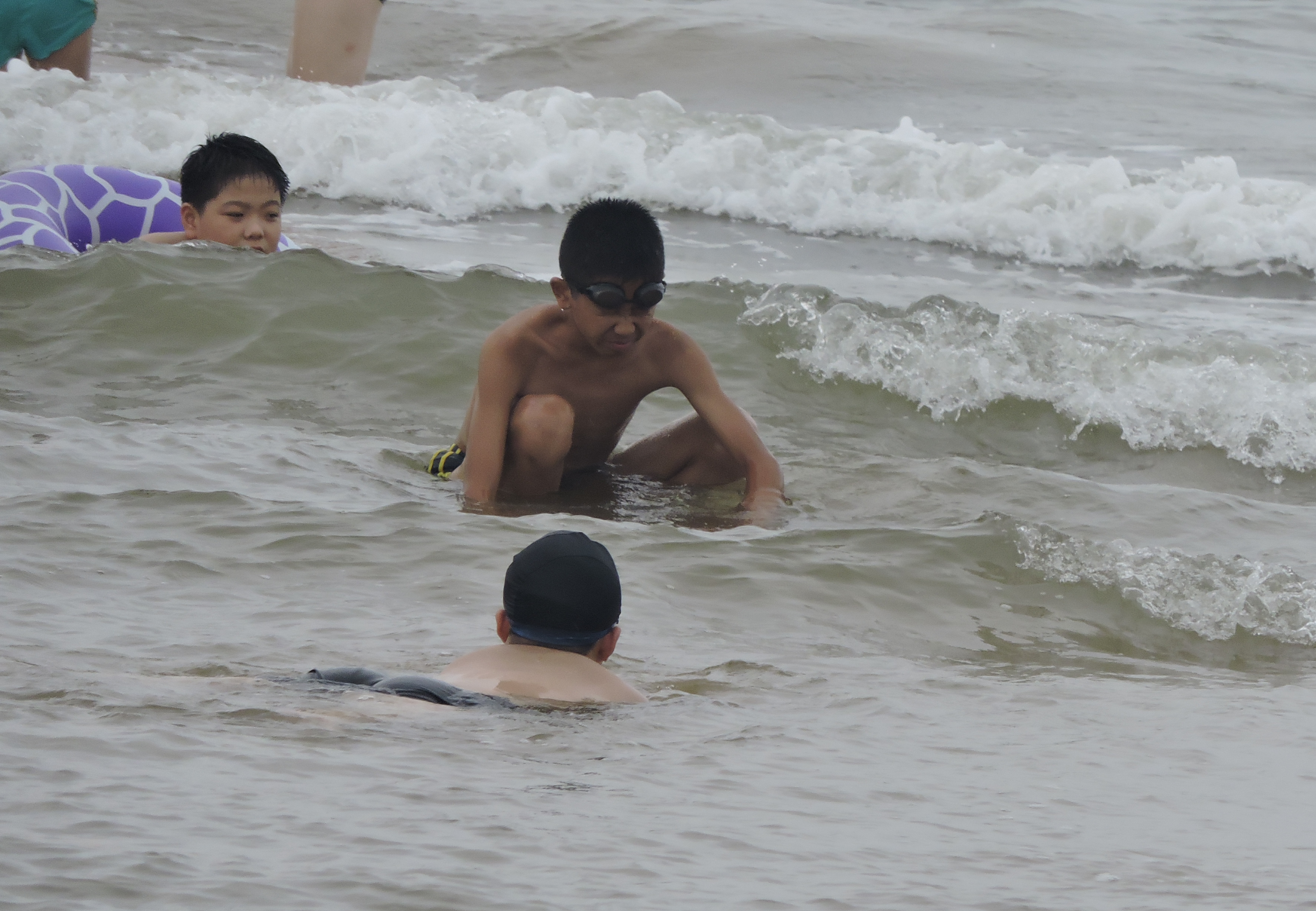 在大海中嬉戲的孩子們盡情的釋放天性,感受大海的無窮力量