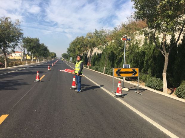 擺放減速標志、反光錐、爆閃燈等安全設(shè)施