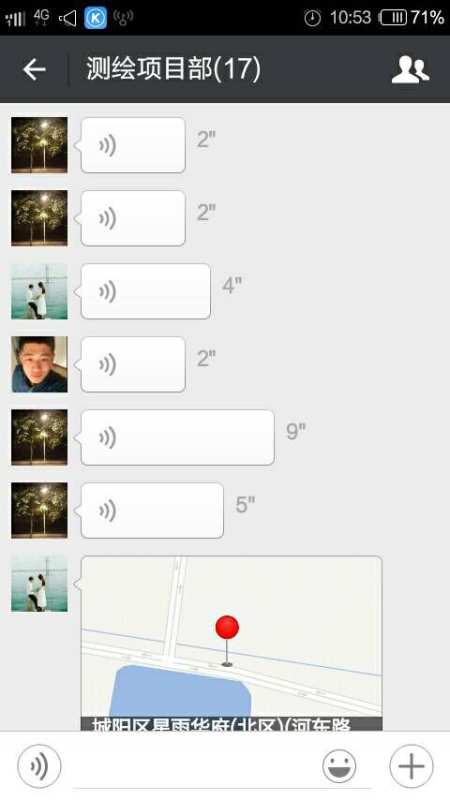 在工作當中,我們的同事經(jīng)常根據(jù)具體情況想辦法出主意,利用平時溝通娛樂的工具解決工作中的實際困難,像大家都非常熟悉的微信,我們微信上面共享位置,我們利用導航地圖探討線路的走向,每當聽到幾個人激烈的討論線路的走向,坐標的位置等問題,我都能體會到大家對工作認真負責的態(tài)度。我堅信只要我們心往一處想,勁往一處使,不怕困難、不斷總結(jié),不斷付出我們的智慧和汗水,我們就一定能夠順利完成所有的測繪項目,我們測繪項目部的未來也一定會是光明和燦爛的!