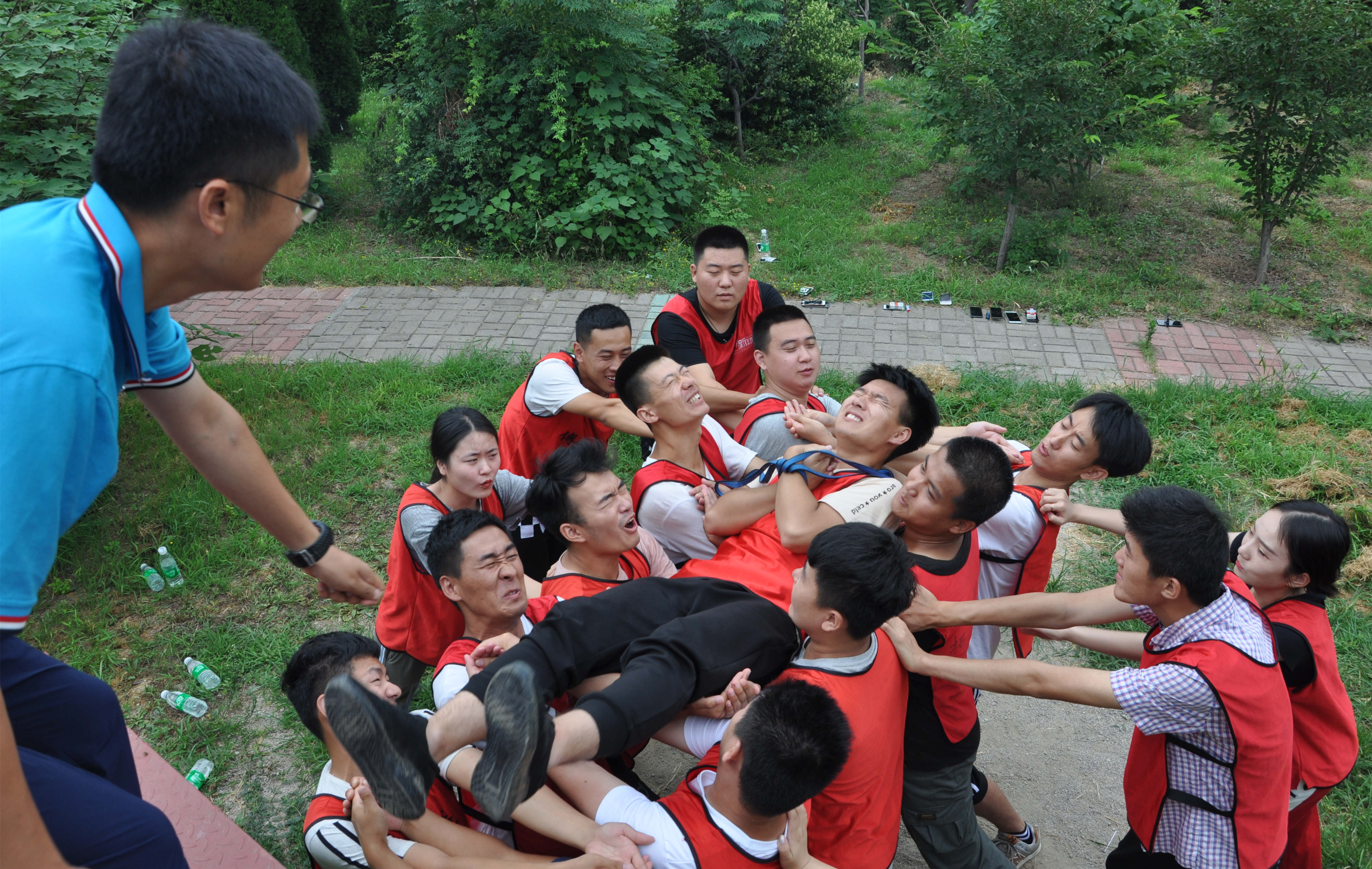 信任背摔項(xiàng)目中,隊(duì)友們搭起堅(jiān)實(shí)的人床,保證挑戰(zhàn)隊(duì)員的安全