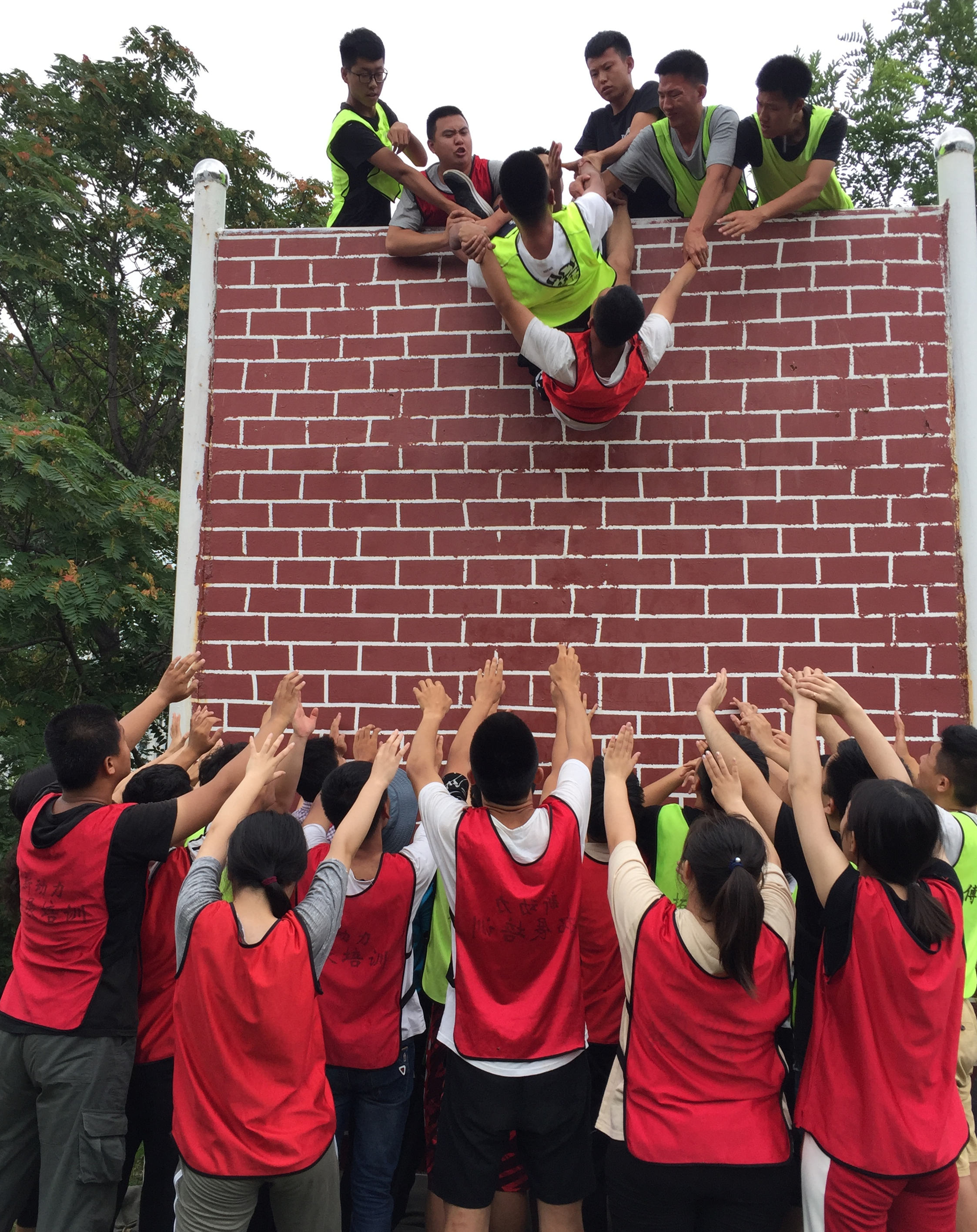隊(duì)員們齊心協(xié)力,你托我舉,幫助隊(duì)友們一一翻越求生墻