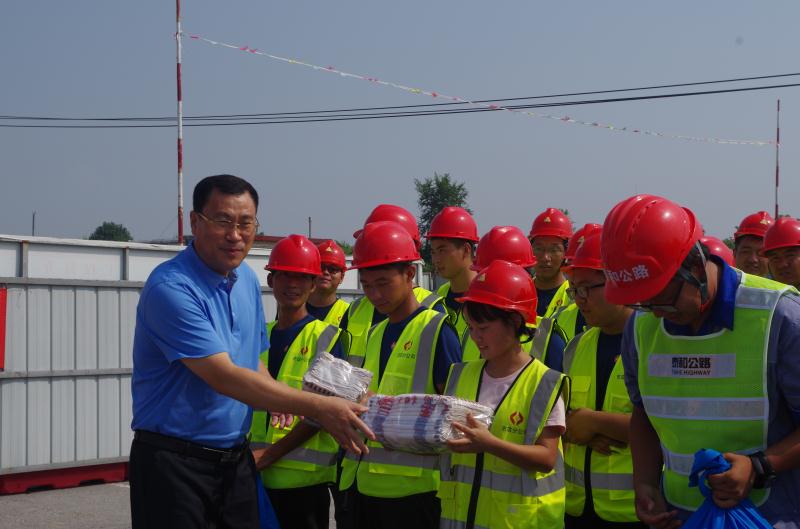 收尾工程現(xiàn)場(chǎng)施工員也是主動(dòng)干起了職業(yè)保健員的工作,主動(dòng)把防暑藥品發(fā)放到現(xiàn)場(chǎng)施工隊(duì)伍手中,看著汗水濕透衣背工人,隨時(shí)把飲用水遞給正埋頭工作的技術(shù)工人們。原來(lái)還是要?jiǎng)e人照顧的小青年,現(xiàn)在都已經(jīng)知道照顧別人了。經(jīng)開(kāi)區(qū)路基施工白天氣溫太高不利于生產(chǎn),夜間水分揮發(fā)性小,項(xiàng)目部則充分利用晝夜溫差抓緊時(shí)機(jī)展開(kāi)夜間施工。309改建工程,大家不顧高溫酷熱抓進(jìn)度趕工期,領(lǐng)導(dǎo)們看大家不顧高溫堅(jiān)守施工崗位,看在眼里,疼在心里,市交通局黨委書(shū)記、公路局黨委書(shū)記,市總工會(huì)領(lǐng)導(dǎo)等百忙之中也給大家送來(lái)防暑降溫物資,發(fā)放到員工手中,關(guān)心的話語(yǔ)更是給夏日里一線員工心中注入清涼。