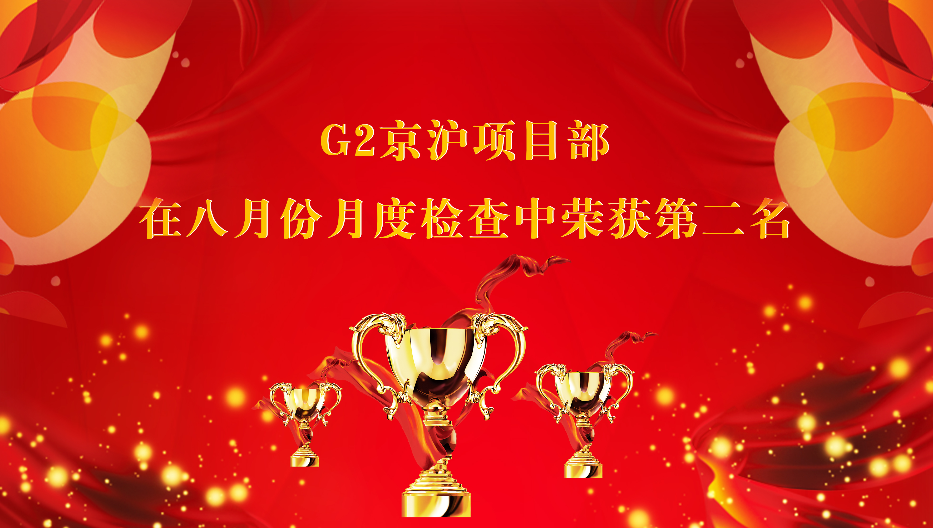 G2京滬項(xiàng)目部獲得八月份月度綜合檢查第二名