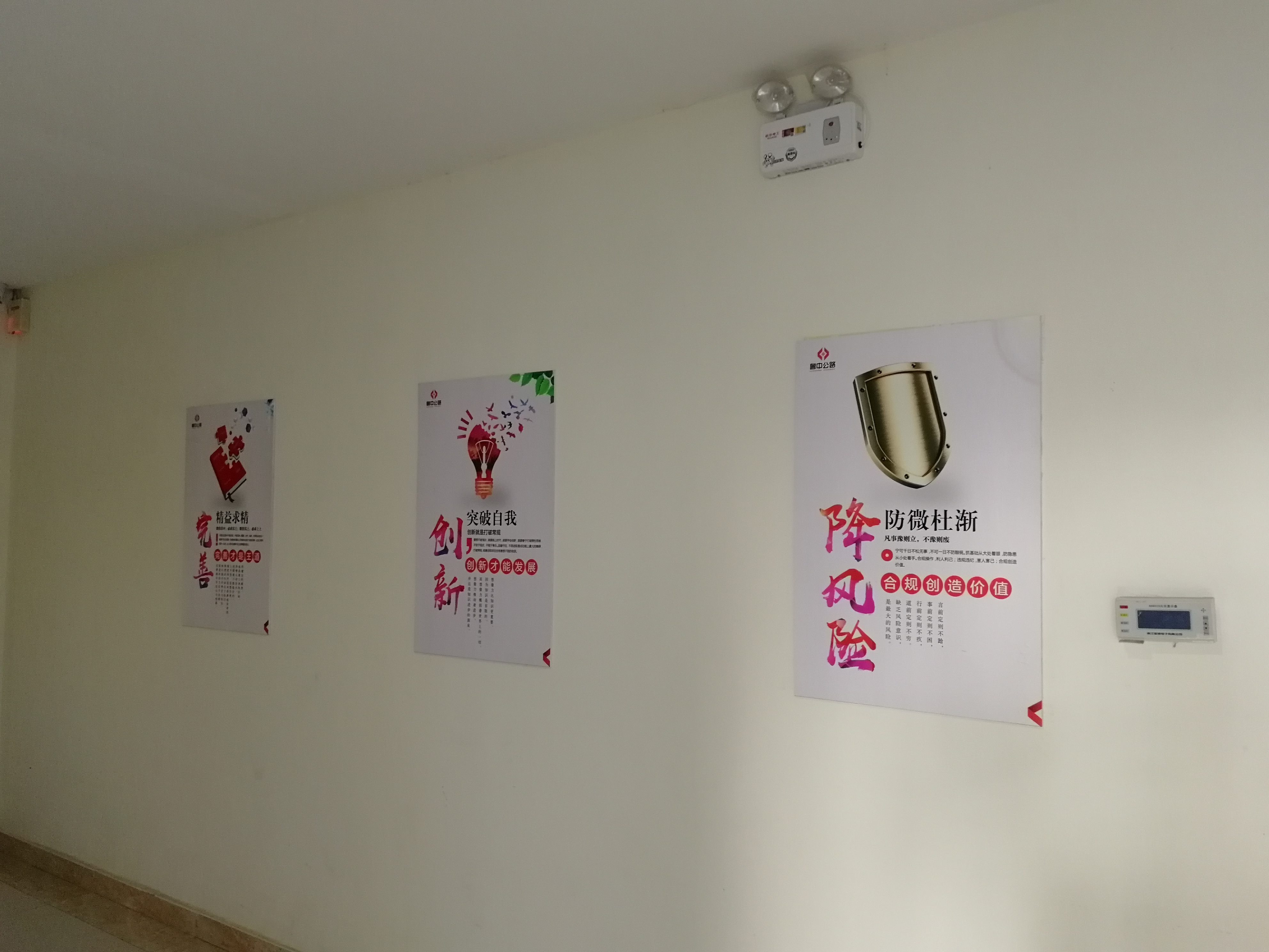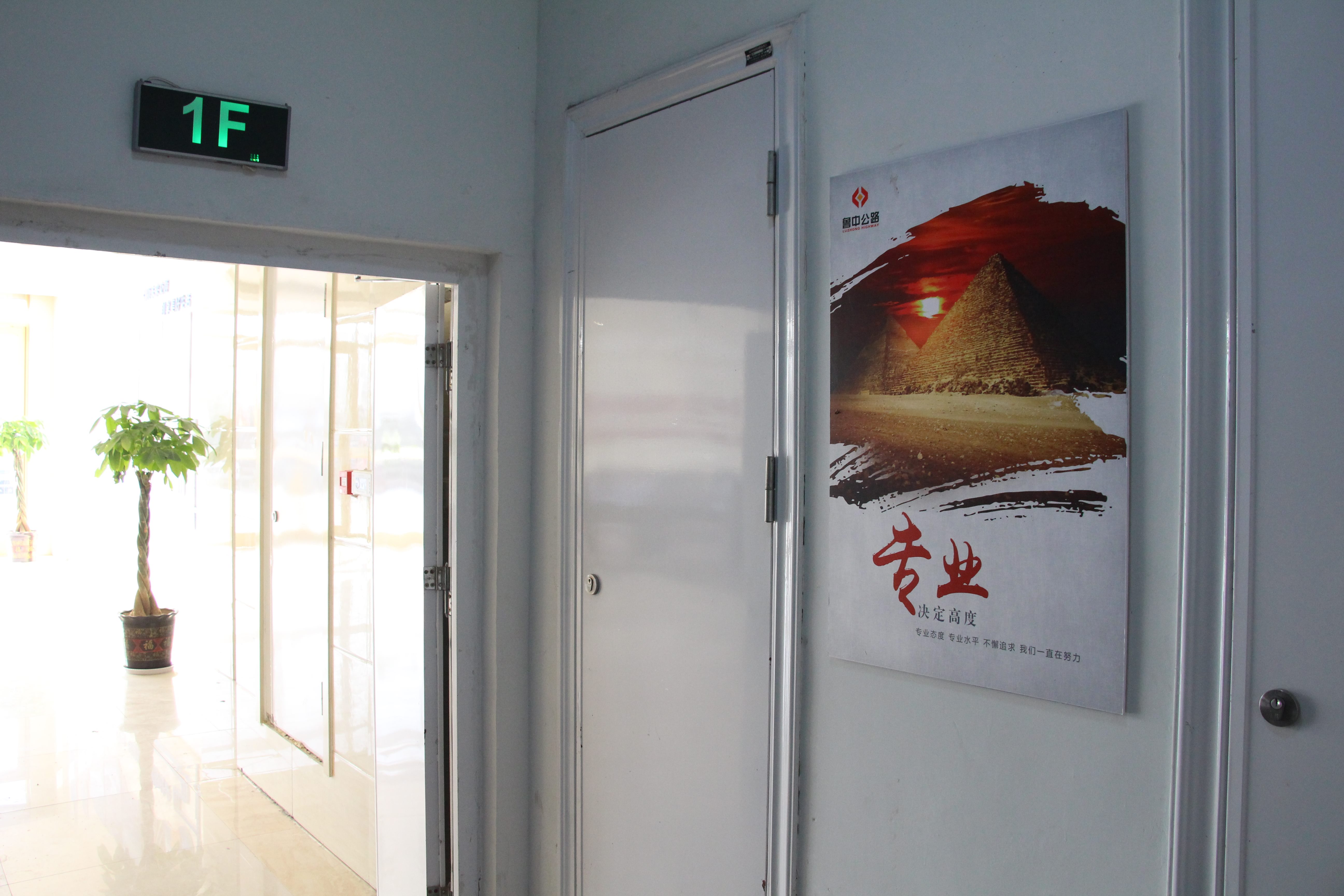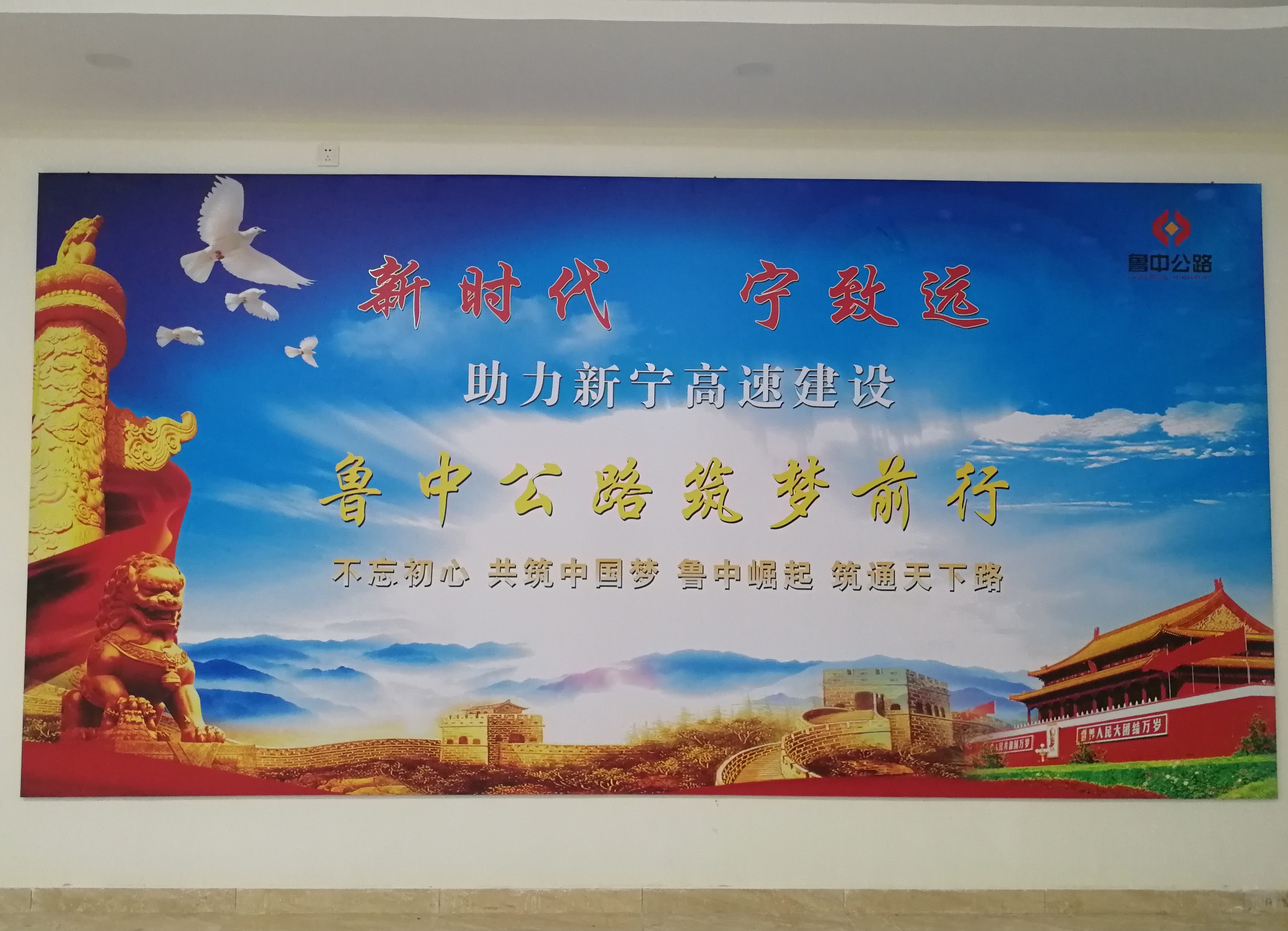推開(kāi)項(xiàng)目部大門(mén),進(jìn)入一樓大廳內(nèi),首先映入眼簾的是魯中公路標(biāo)志及文化標(biāo)語(yǔ)。