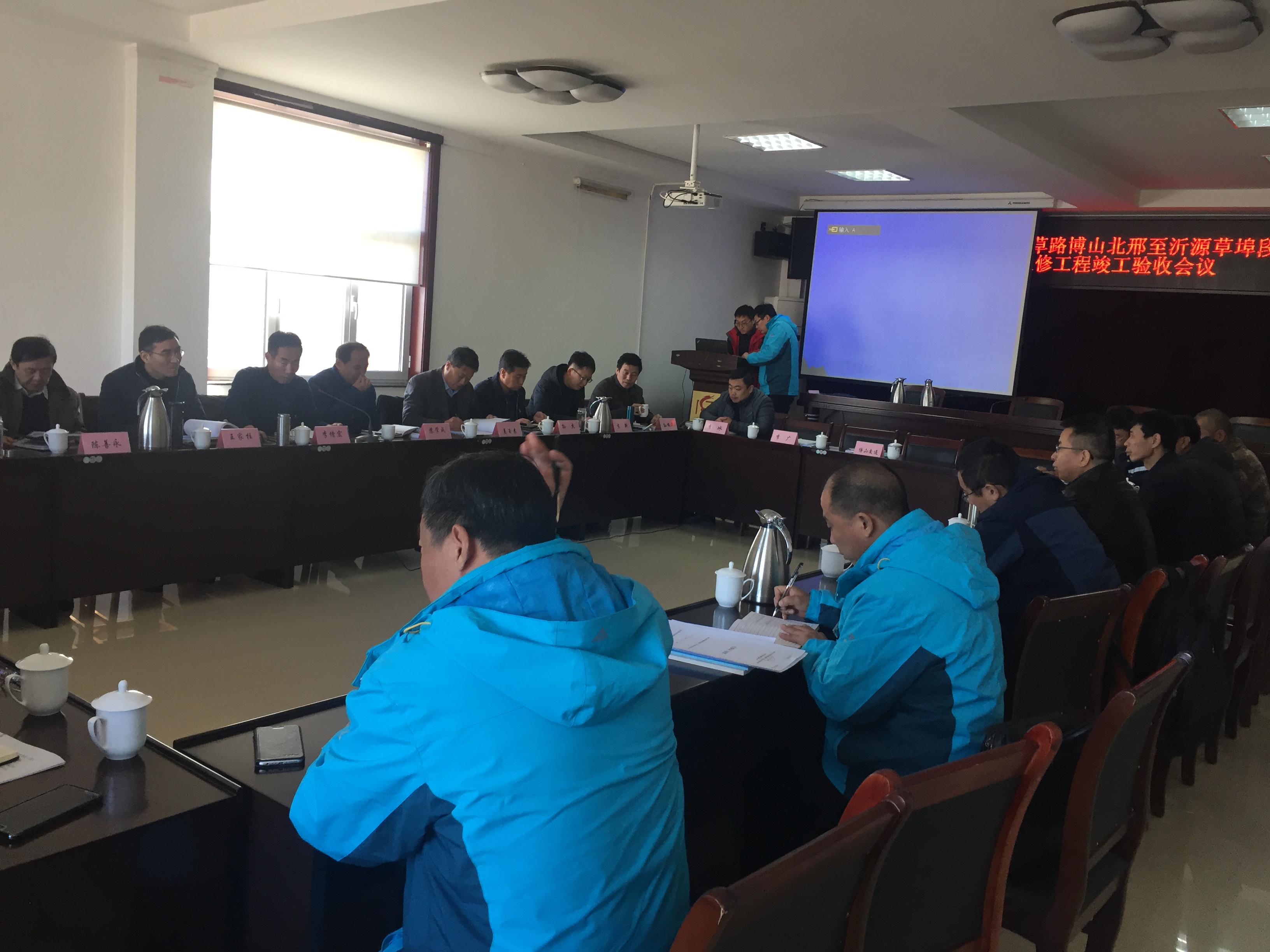 參加竣工驗收的人員首先對博草線K12+450-550處進行了現(xiàn)場步檢,并聽取了施工單位的現(xiàn)場匯報。現(xiàn)場檢查完畢后在淄博市公路管理局博山分局會議室召開了竣工驗收會議。與會專家一致認為博草線施工符合設(shè)計及規(guī)范要求,未完工程均保質(zhì)保量的進行了完成,并在缺陷責(zé)任期積極進行維護,同意通過竣工驗收。