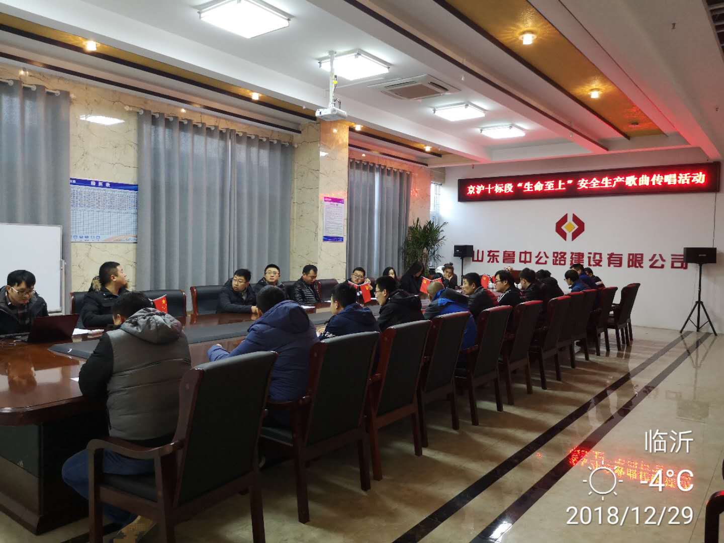 根據(jù)省政府安委會(huì)辦公室《關(guān)于傳唱“生命至上”安全生產(chǎn)主題歌曲的通知》要求,為貫徹落實(shí)黨的十九大精神和習(xí)近平總書記關(guān)于安全生產(chǎn)工作重要指示批示精神,我項(xiàng)目部高度重視,安全部積極組織項(xiàng)目部全體員工于2018年12月29日開展“生命至上”安全生產(chǎn)主題歌曲傳唱活動(dòng)。