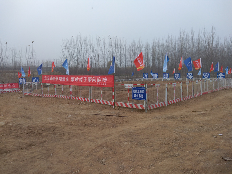 基坑開挖后清除挖出土石方整平四周工作場地,安裝架桿作骨架的基坑護(hù)欄