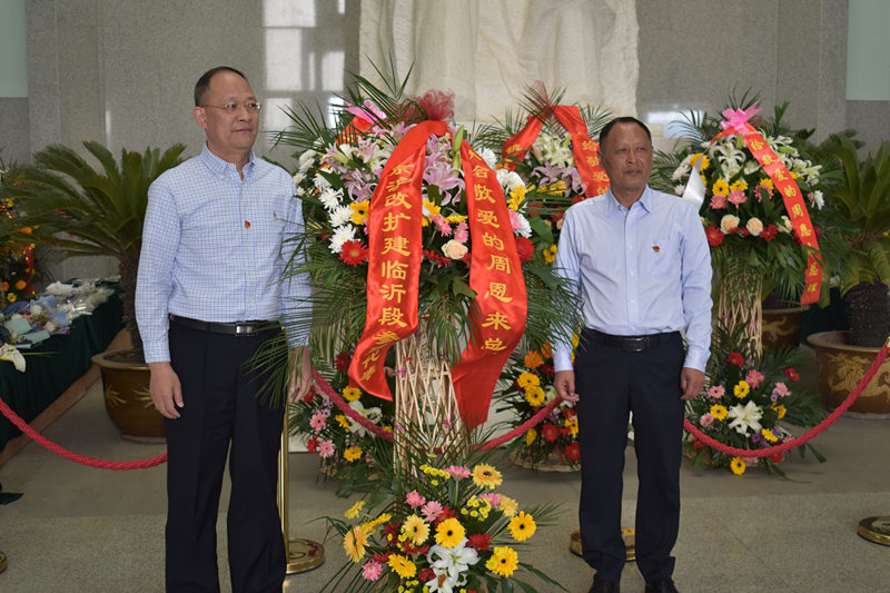 在紀(jì)念館,大家循著腳步,首先來到主館,主館坐落在綠色草坪的基臺上,象征著周總理無私奉獻(xiàn),一生為人民著想,扎根在祖國的土地上。大廳內(nèi)樹立一座漢白玉像,目視遠(yuǎn)方,正氣浩然。一行人為總理獻(xiàn)花挽聯(lián),莊嚴(yán)宣誓。