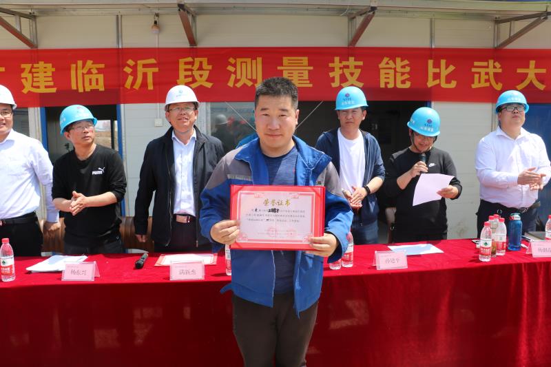 幕后英雄,臺(tái)前競技。2019年4月18日,在京滬臨沂項(xiàng)目辦、總監(jiān)辦組織開展“測量技能大比武”活動(dòng)中,我標(biāo)段李丙廣、王鵬飛、劉照輝、謝士瑞的代表隊(duì)以速度第一,測量精度第一,卷面整潔準(zhǔn)確度第一,綜合評(píng)比第一的驕人成績勇奪第一名。