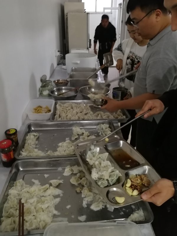 很快,晚飯時間到,在食堂大廚的一番操作下,一盤盤熱騰騰餃子端了出來,大家爭先恐后的拿出餐盤,來點醋,加點蒜泥,配上點辣椒油,再來兩塊醬豆腐,眼瞅著哈喇子就下來了。