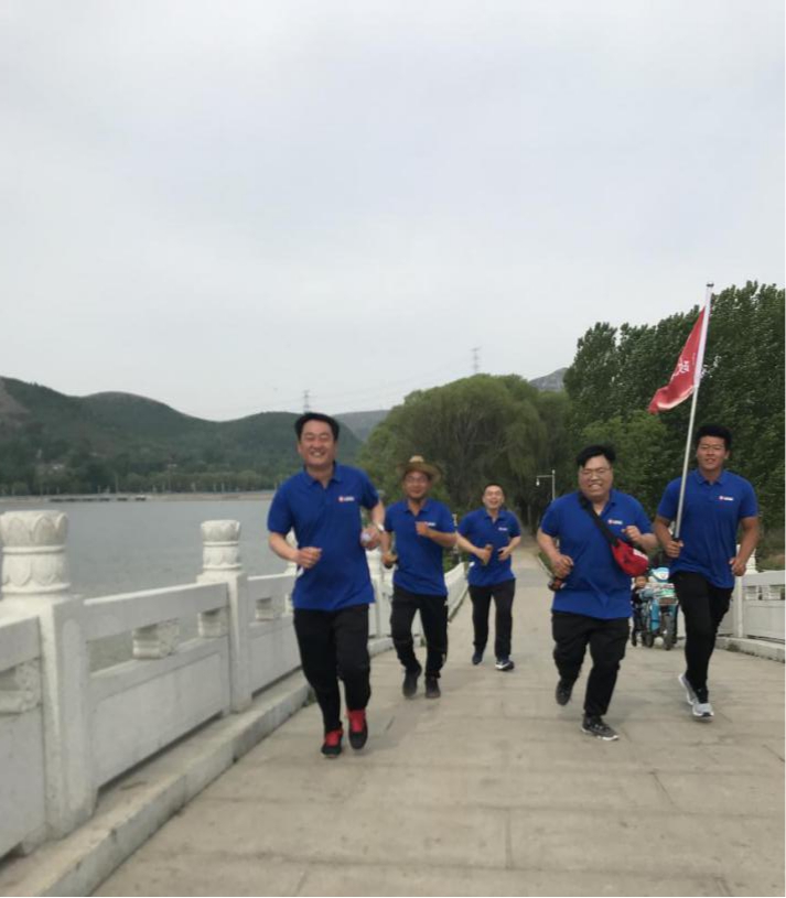隨著項(xiàng)目經(jīng)理的一聲令下,大家向前方奮勇跑去,不多時(shí),年輕氣盛的小伙子們大步奔跑遙遙領(lǐng)先,年長(zhǎng)的前輩們則在隊(duì)伍后面快步走著,前后呼應(yīng),倒也相映成趣。