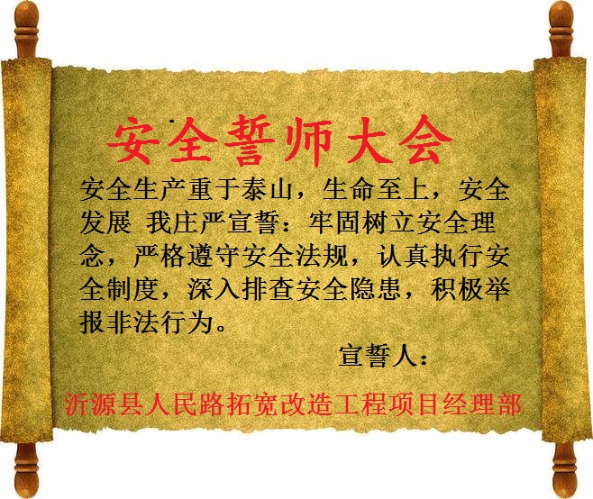 18點(diǎn)沂源縣人民路下屬施工隊現(xiàn)場負(fù)責(zé)人20幾人陸續(xù)來到會議室,一起用洪亮的聲音,對安全制度的遵守等進(jìn)行了宣誓并簽名。
