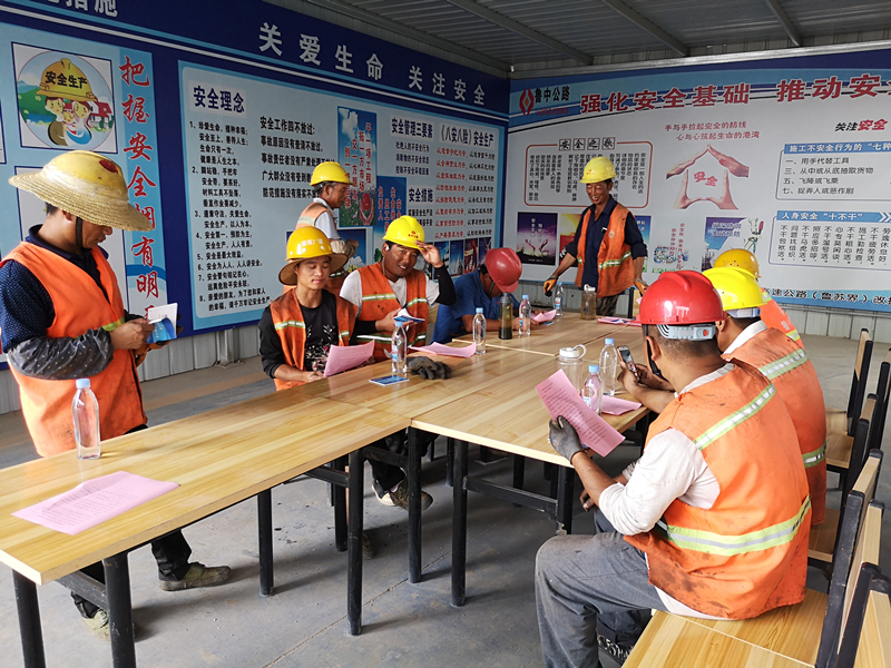 在綜合場(chǎng)站設(shè)立安全咨詢臺(tái)分發(fā)“安全生產(chǎn)明白卡”及“安全指導(dǎo)手冊(cè)”,宣傳安全生產(chǎn)知識(shí)及法律法規(guī),面對(duì)面解決施工人員關(guān)心的安全生產(chǎn)問題,切實(shí)做好安全咨詢活動(dòng)及人文關(guān)懷。