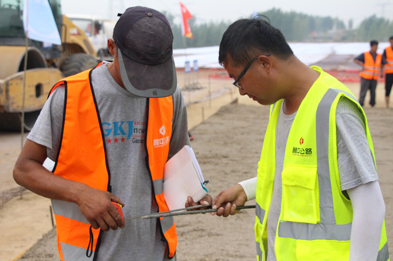 本次底基層試驗(yàn)段的攤鋪過程中,業(yè)主、監(jiān)理單位有關(guān)負(fù)責(zé)人親赴現(xiàn)場(chǎng),進(jìn)行觀摩指導(dǎo),下午,隨著最后一輛水穩(wěn)料車駛離現(xiàn)場(chǎng),該試驗(yàn)段攤鋪工作順利結(jié)束。