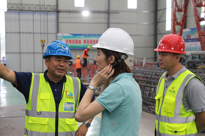 下午16:10分,在施工現(xiàn)場采訪結(jié)束后,節(jié)目組一行來到我部華豐梁場,采訪過程中,大家先后對華豐梁場的場站標準化建設;鋼筋加工場標準化、智能化、機械化建設;施工管理標準化建設等工作內(nèi)容進行了采訪??偙O(jiān)辦高總代表新寧項目接受了采訪,并就相關(guān)問題進行了解答。