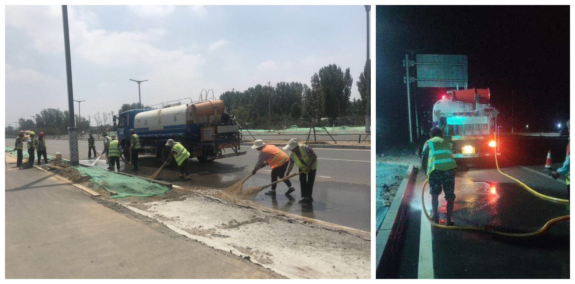 六月的天氣,燥熱難安,辦公室里空調(diào)不停的吹著冷風(fēng)大家都感覺悶熱。可沂源縣人民路的現(xiàn)場施工人員,無懼強烈的炙烤,按照每天商定的施工方案,堅守著每個人的崗位;因時間緊任務(wù),晚上加班工作是常態(tài),沒有人言苦言累更沒有退縮;為了給沂源人民一個潔凈的人民路,大家紛紛拿起笤帚,跟隨水車,頂著烈日,披著星光,一寸一寸的清理著路面。
