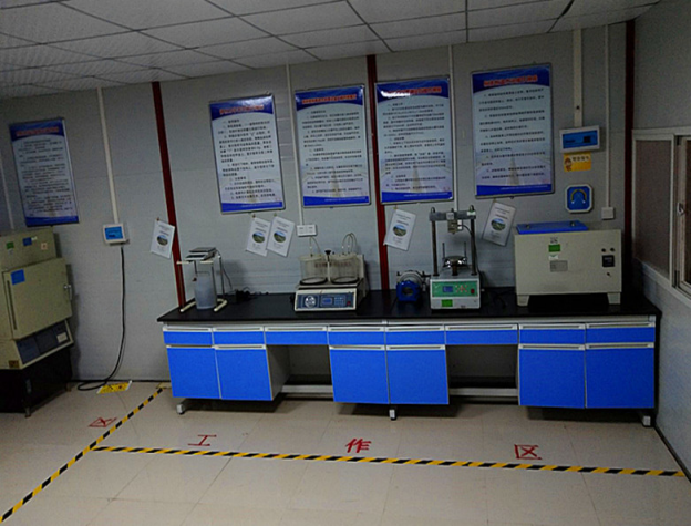 試驗(yàn)室工作為路面項(xiàng)目指導(dǎo)施工的核心部分,項(xiàng)目部加大建設(shè)投入,統(tǒng)一采購(gòu)全新路面試驗(yàn)設(shè)備。在滿足標(biāo)準(zhǔn)化施工的基礎(chǔ)上,合理對(duì)工作區(qū)進(jìn)行劃分,并設(shè)計(jì)警示線,采購(gòu)專門的試驗(yàn)操作臺(tái),做到試驗(yàn)室干凈整潔,以保證試驗(yàn)室工作的順利展開。