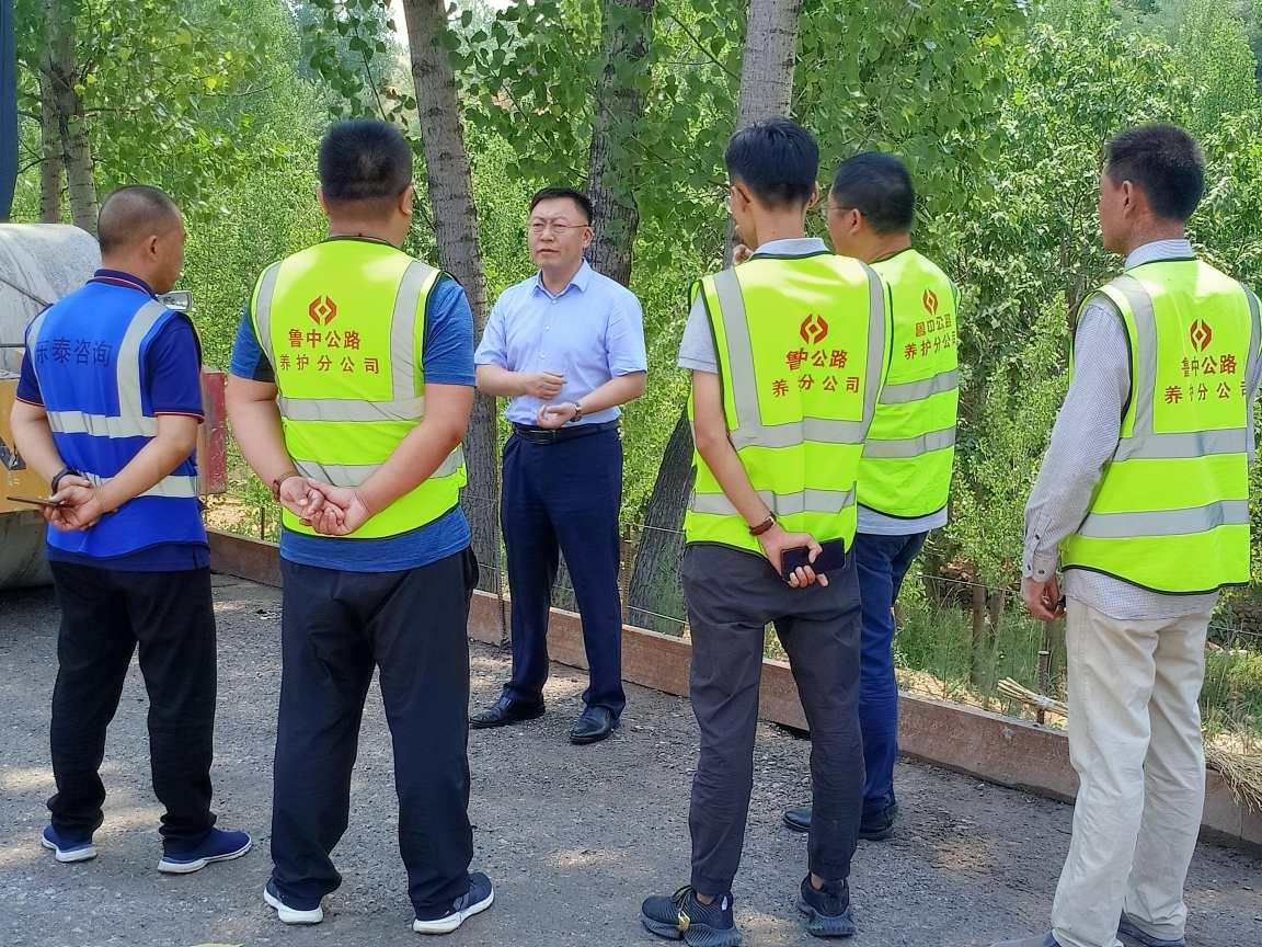 沂源公路事業(yè)服務中心王毅副局長(左三)現(xiàn)場指導