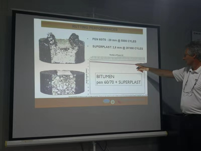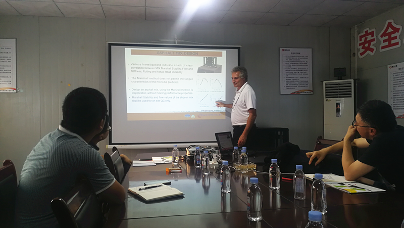 2019年7月15日意大利公路工程技術(shù)專家菲利普先生與市交通事業(yè)服務(wù)中心養(yǎng)護科,針對目前淄博重載交通、長縱坡和高溫季節(jié)等極易出現(xiàn)車轍問題,在山東魯中公路市政工程分公司進行調(diào)研與工藝學術(shù)探討。