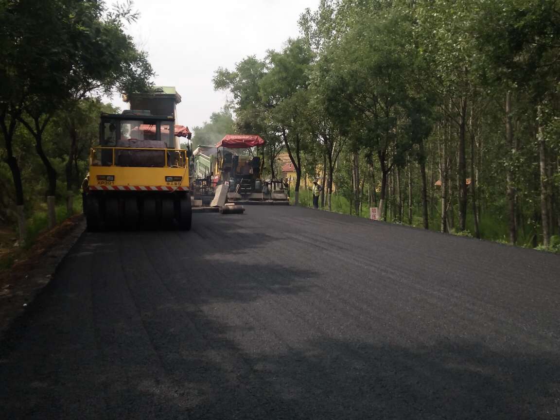 瀝青下面層施工現(xiàn)場膠輪碾壓