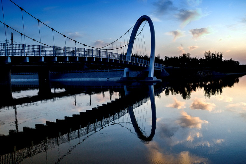盛夏的周末,在房經(jīng)理的帶領(lǐng)下,我們?nèi)チ诵D河公園,觀看了精彩的音樂(lè)噴泉,伴著夏日清清涼涼的夜風(fēng),我們一行人步行來(lái)到了孝婦河懸索橋,沒(méi)錯(cuò),就是咱們魯中公路施工建成的大橋。