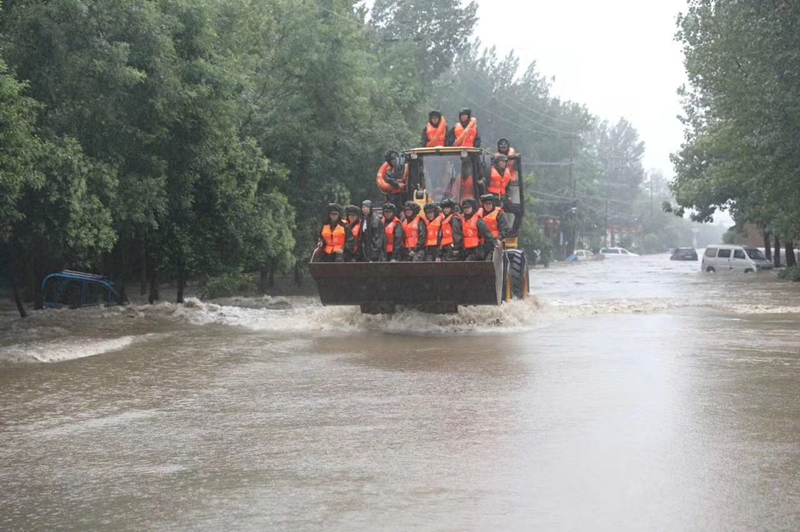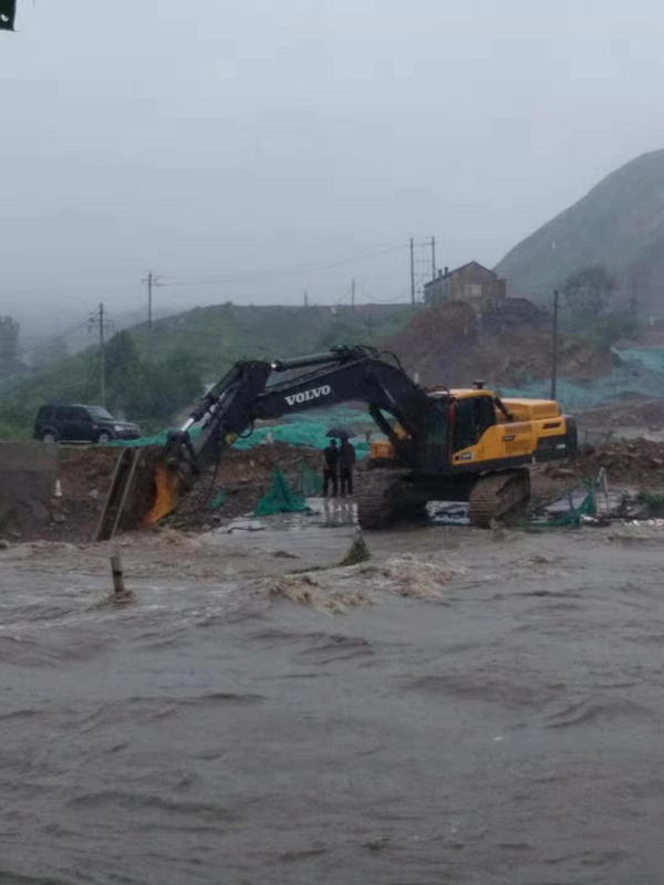 受“利奇馬”影響,8月10號(hào)到12號(hào)淄博市普降暴雨,孝婦河水位暴漲,袁家橋村段發(fā)生兩處50米、10米的決口,附近村莊被淹,情況危急。在項(xiàng)目自身受到臺(tái)風(fēng)與洪水影響的情況下,魯中公路經(jīng)開區(qū)分公司自8月11日17時(shí)開始,分批次投入搶險(xiǎn)人員34人,搶險(xiǎn)車輛7臺(tái),冒雨投入到抗洪救災(zāi)搶險(xiǎn)工作中。8月12日4時(shí),魯中公路柳園路孝婦河橋項(xiàng)目部又組織11人救援小組與一臺(tái)裝載機(jī)雨中再次奔赴搶險(xiǎn)救援現(xiàn)場(chǎng)。在省、市、開發(fā)區(qū)、及市交通運(yùn)輸局等領(lǐng)導(dǎo)的督導(dǎo)下,水利專家的指導(dǎo)下,魯中公路與500多名武警官兵、公安干警、消防戰(zhàn)士,及經(jīng)開區(qū)管委會(huì)、經(jīng)開區(qū)各施工單位,當(dāng)?shù)孛癖姷?000多人經(jīng)過兩天近50個(gè)小時(shí)的日夜奮戰(zhàn),8月13日下午16時(shí),袁家橋段缺口成功堵住。