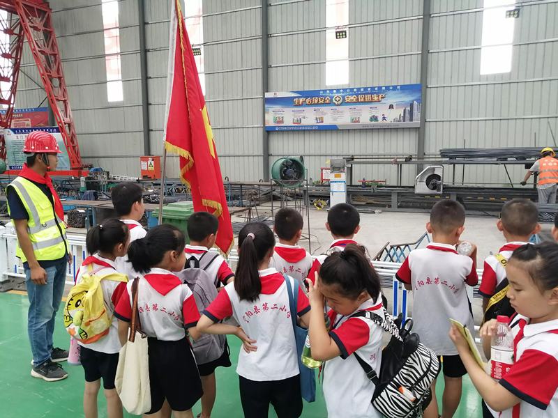 2019年8月24日,寧陽縣第二小學(xué)的30名少先隊員在輔導(dǎo)員老師的帶領(lǐng)下,帶著這些疑問來到了山東魯中公路建設(shè)有限公司新寧項目華豐預(yù)制梁場,開展了“我與祖國共成長,爭做小小追夢人”紅領(lǐng)巾尋訪“最美建設(shè)者”的活動。