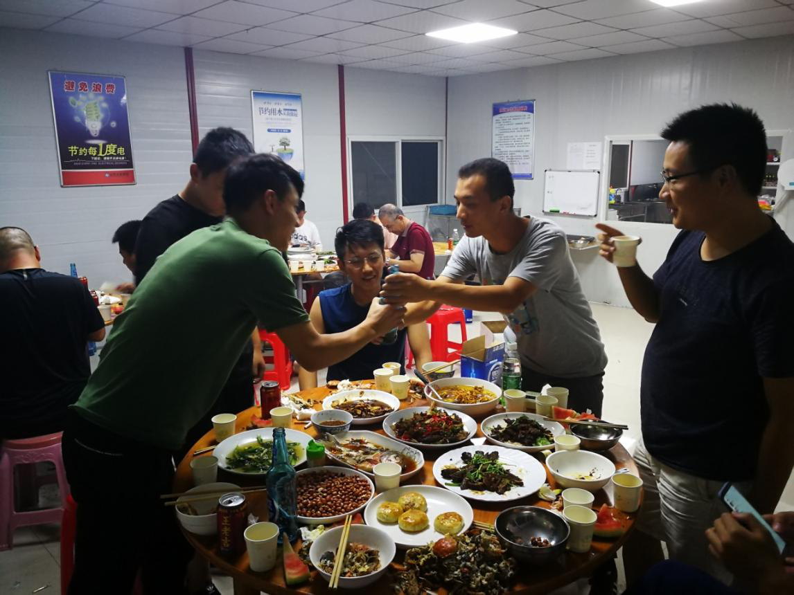 歡度中秋佳節(jié),怎么能少了福利呢,項(xiàng)目部在中秋節(jié)一大早就為我們發(fā)放中秋福利,那精美包裝的月餅,香甜可口的水果,讓我們?cè)谥星锏那宄烤透惺艿搅斯?jié)日到來的氛圍,感受到項(xiàng)目部大家庭來的中秋的祝福。中秋月圓之夜,項(xiàng)目部食堂已經(jīng)為我們準(zhǔn)備的豐盛的中秋晚宴,大家共聚一堂,今晚沒有領(lǐng)導(dǎo)上下級(jí)之間的束縛,相聚一堂,我們都是朋友,舉起酒杯,我們都是家人,我們?cè)谶@團(tuán)聚的日子里,我們一起碰杯,祝福我們各位同事節(jié)日快樂,工作順利;祝福我們的家人身體健康,生活幸福;祝福我們的項(xiàng)目一帆風(fēng)順,再創(chuàng)輝煌!