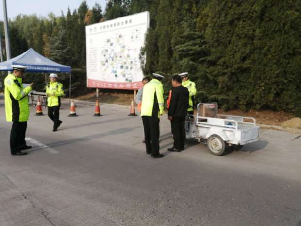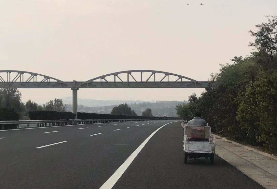 護送三輪車下高速的途中