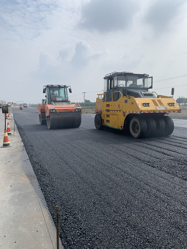 路面工程現(xiàn)在基層施工隊(duì)伍1支及油層施工隊(duì)伍1支,技術(shù)管理及勞務(wù)人員100余人,投入攤鋪機(jī)4臺、雙鋼輪壓路機(jī)8臺、單鋼輪壓路機(jī)2臺、三鋼輪壓路機(jī)2臺、膠輪壓路機(jī)2臺、同步封層車1輛、撒布車1輛、銑刨機(jī)3臺、裝載機(jī)2臺、開槽車1輛、清掃車2輛、干洗車1輛、水車3輛、運(yùn)輸車若干輛,滿足路面施工需求。