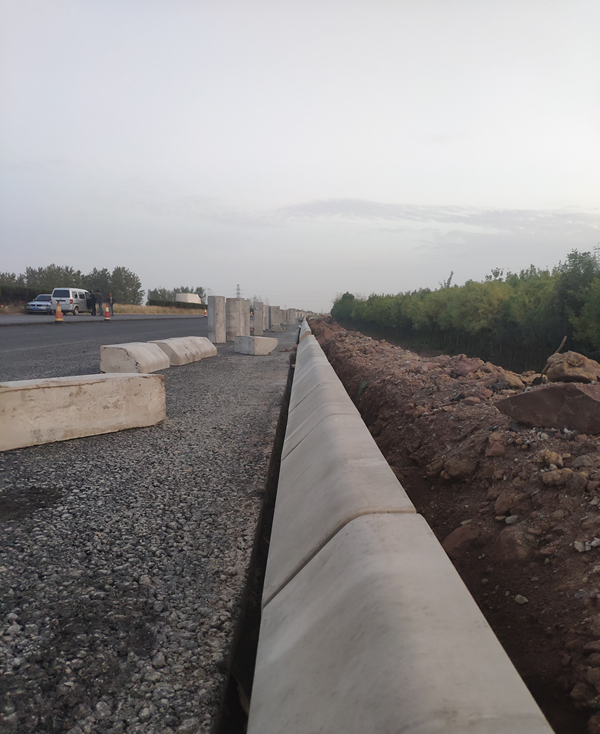 我部共有路緣石安裝65km、急流槽1128道、邊溝及排水溝3.7km及防護(hù)工程漿砌片石5700余方,目前正在施工右幅路緣石安裝、急流槽澆筑、拱形骨架砌筑、邊溝施工,在主體工程施工的同時(shí),附屬工程也按照工序交錯施工,多個(gè)工作面同步展開,緊張繁忙的工作氣息撲面而來。