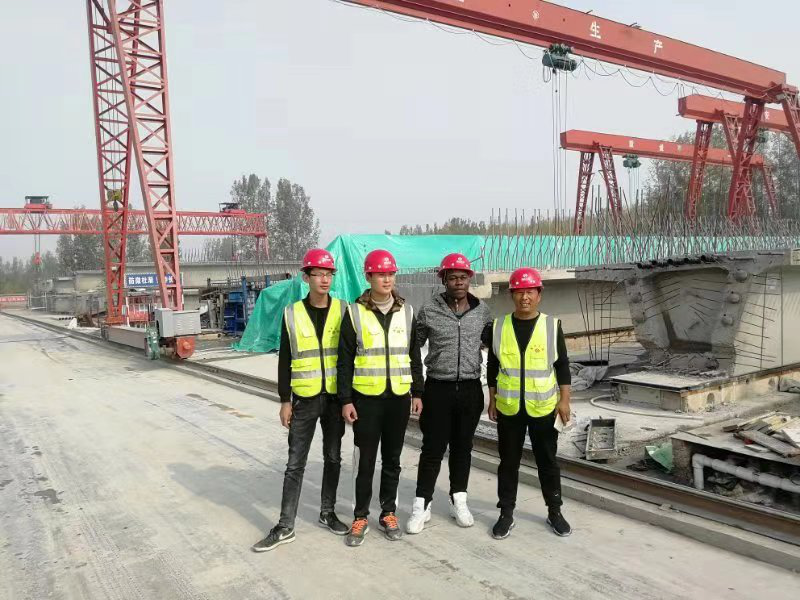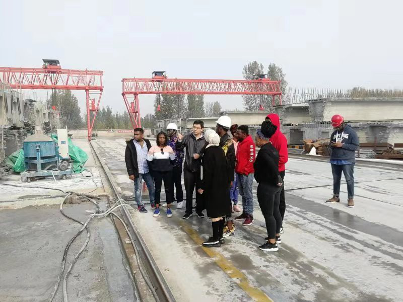 交院隨行老師向外國(guó)留學(xué)生講解了箱梁張拉、壓漿情況