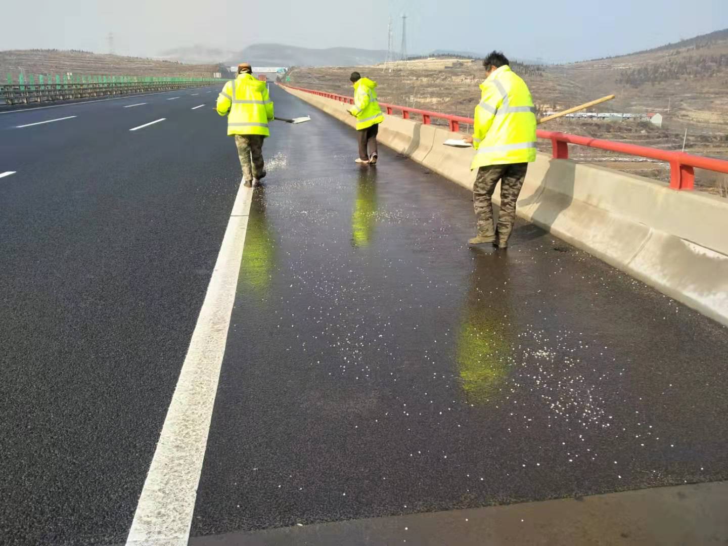 與此同時(shí)我們青蘭小修的工作人員便開始進(jìn)入了應(yīng)急模式,對(duì)積雪的路面進(jìn)行清理和對(duì)路面灑融雪劑的作業(yè),為了防止在高速上因路滑發(fā)生意外,所有工作人員全部都爭分奪秒的進(jìn)行著工作。