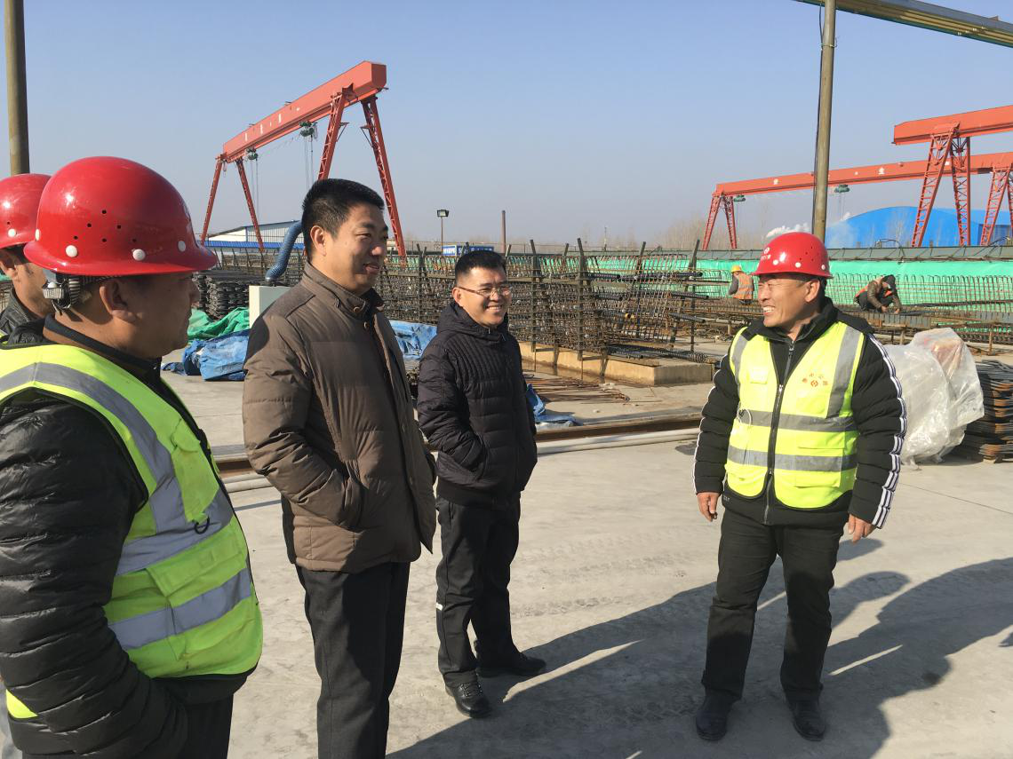 2019年12月27日,公司董事長(zhǎng)焦玉傳對(duì)青蘭項(xiàng)目部施工現(xiàn)場(chǎng)和預(yù)制場(chǎng)進(jìn)行了視察。青蘭項(xiàng)目部負(fù)責(zé)人分別就質(zhì)量、安全、環(huán)保、進(jìn)度控制以及預(yù)制廠生產(chǎn)經(jīng)營等情況向焦總匯報(bào)。