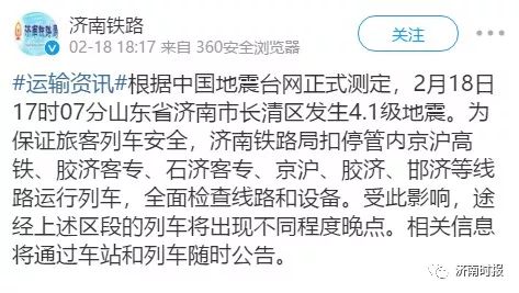 直擊濟(jì)南4.1級地震!列車晚點(diǎn),有救援人員出動